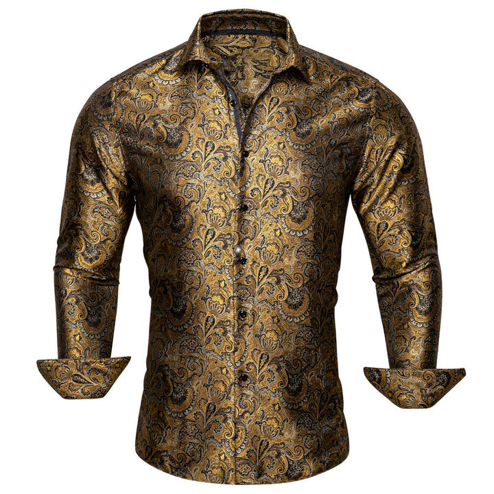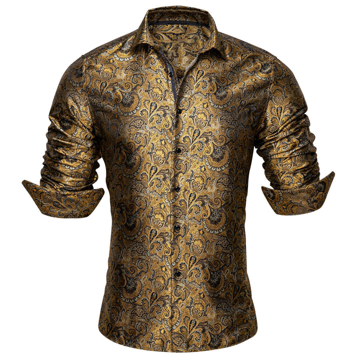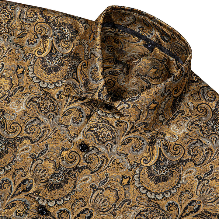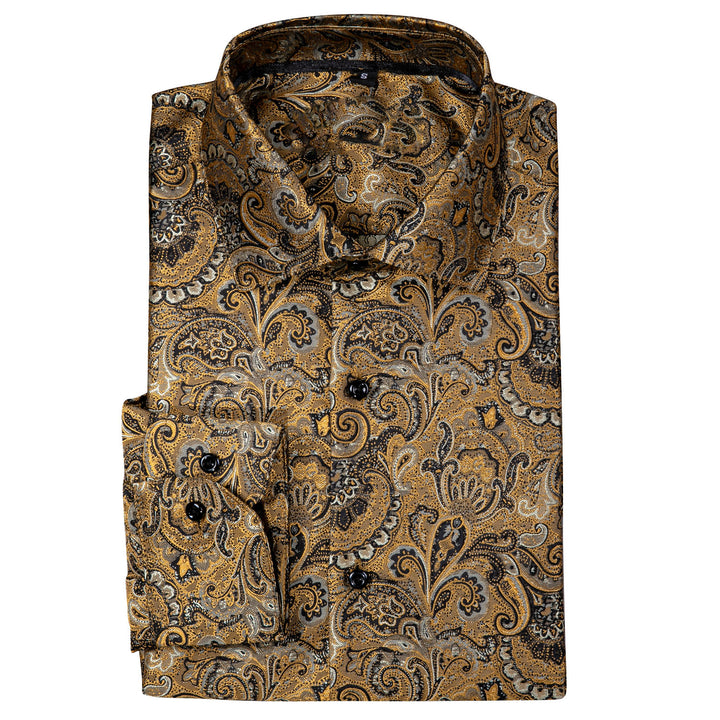 Ties2you Luxury Brownish Yellow Paisley Silk Men's Shirt