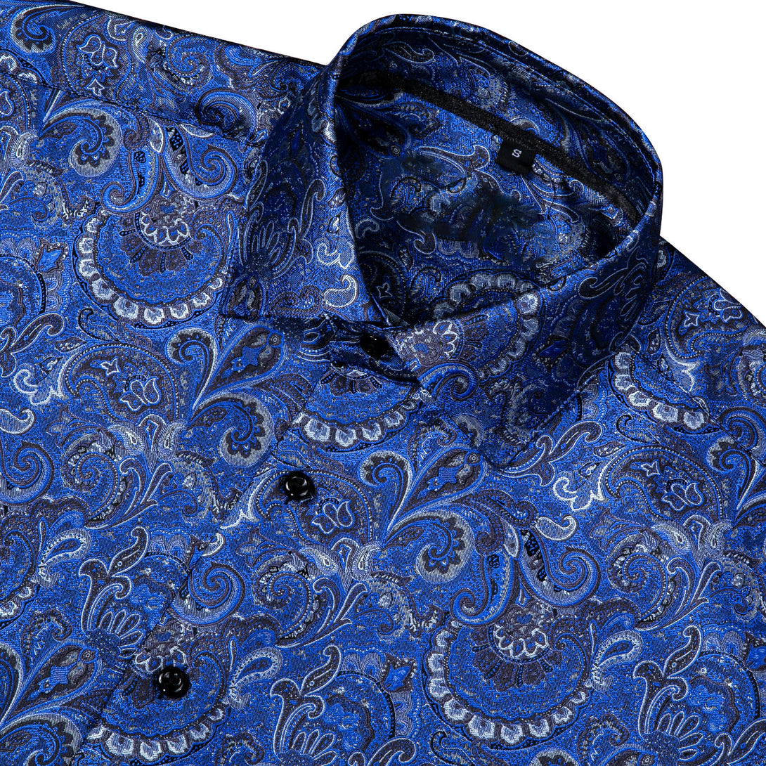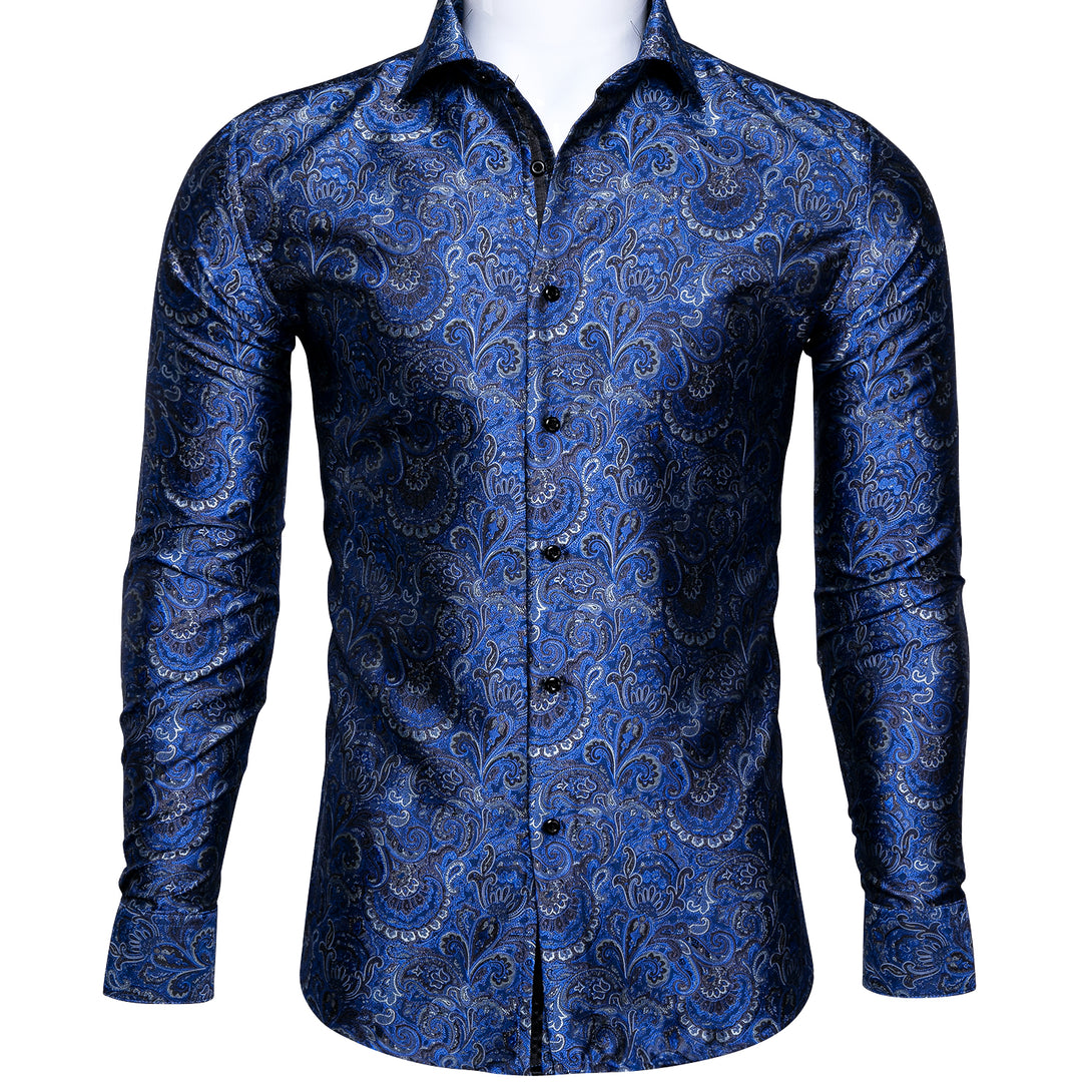 Ties2you Mens Paisley Dress Shirt Navy Blue 70s Disco Long Sleeve Button Down Shirt