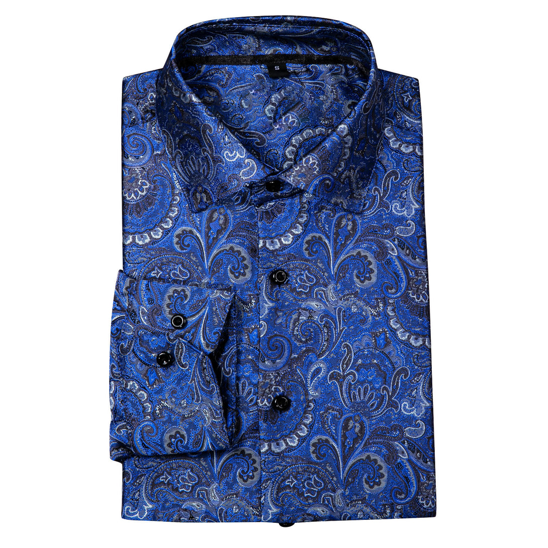 Royal Blue Paisley Button Down men's business casual dress shirts