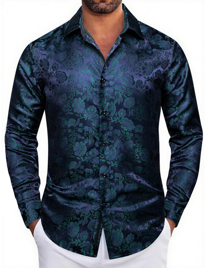 Feature: High Density Fabric/Fashion Printed Floral/Soft decent Slim Fit/Bright Color/Turn Down Collar/Button-down Shirt. High quality fabric makes this button down dress shirt smooth, shiny, soft and comfortable, stylish and luxury looking.
