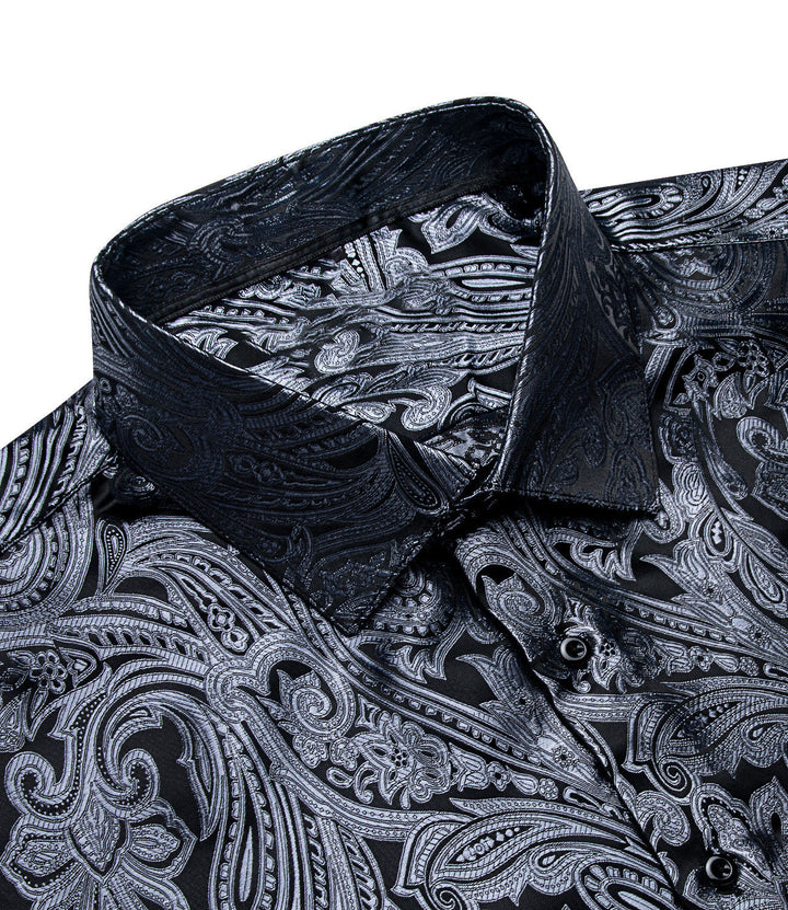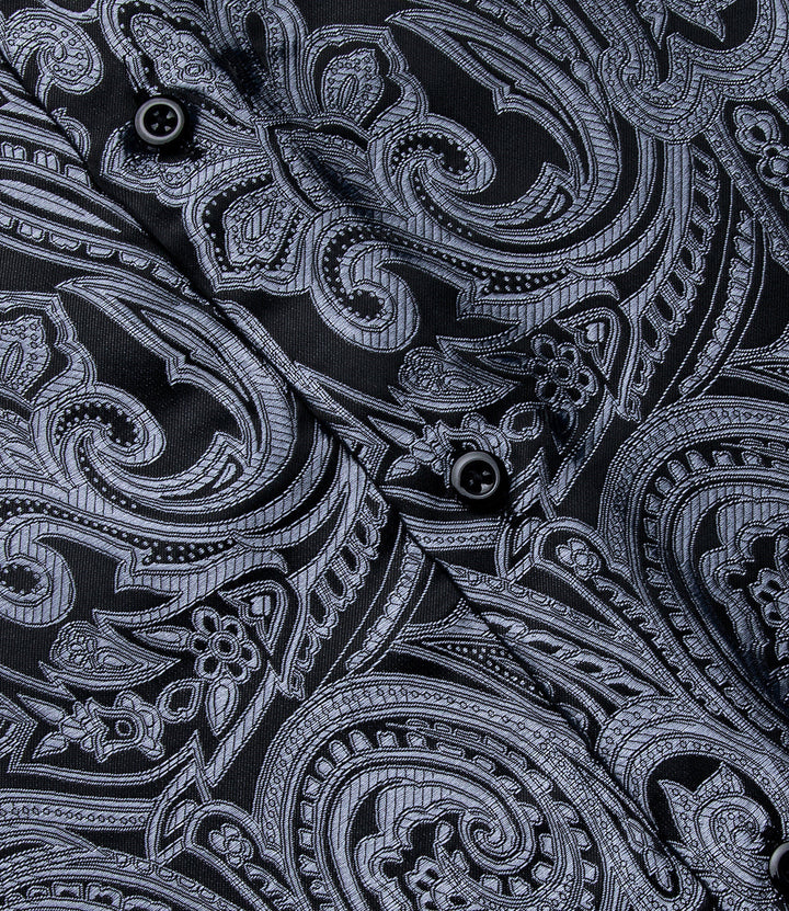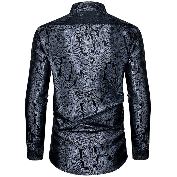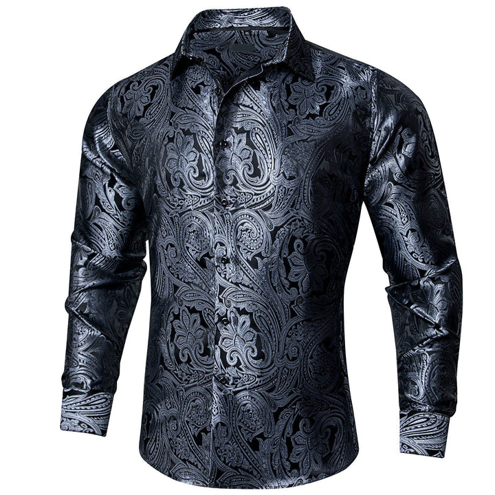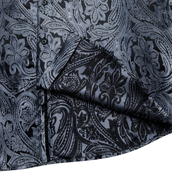 Ties2you Mens Charcoal Grey Shirt Paisley Button Down Long Sleeve Shirt for Party
