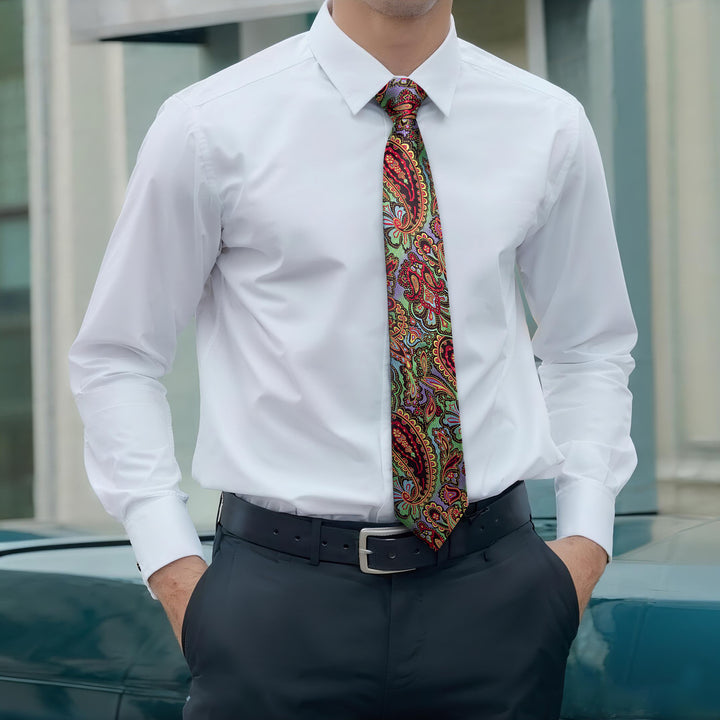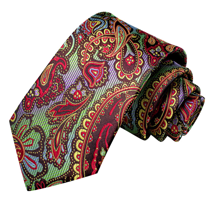 Ties2you Mens Paisley Tie Silk Red Suit Necktie Handkerchief Cufflinks Set
