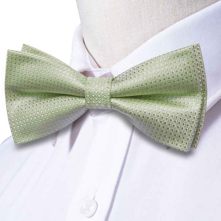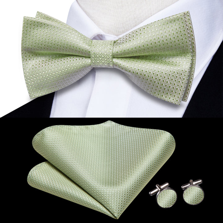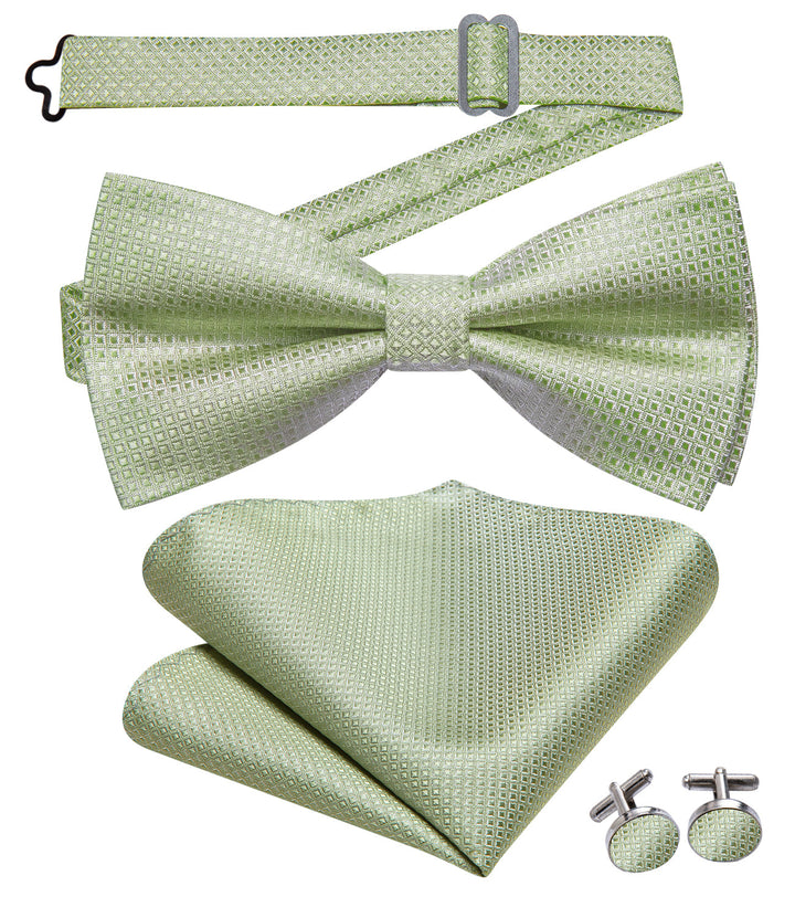 Ties2you Men's Sage Green Pre-tied Bow Tie Geometric Bowtie Handkerchief Cufflinks Set