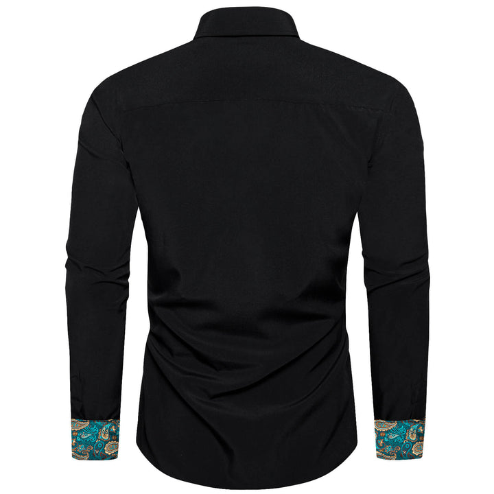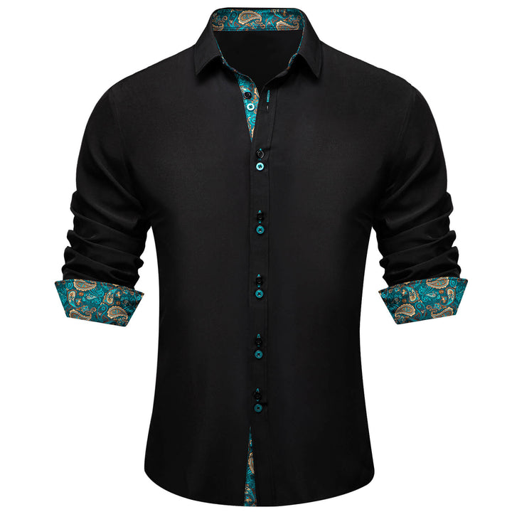 Black Solid Teal Paisley Splicing Silk Dress Shirt