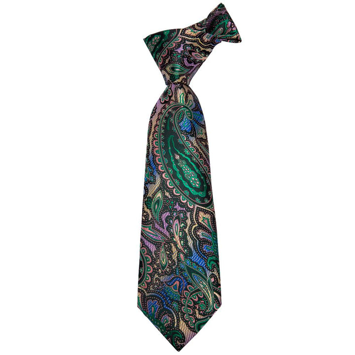 Ties2you Mens Paisley Necktie Formal Green Suit Tie Handkerchief Cufflinks Set