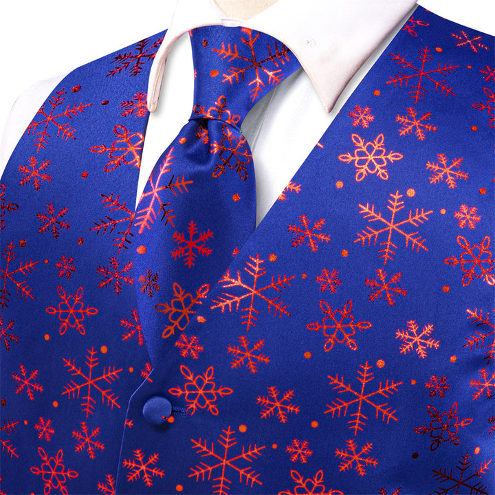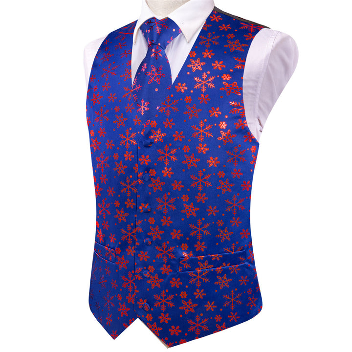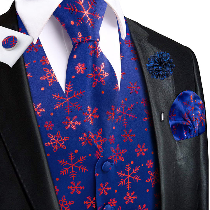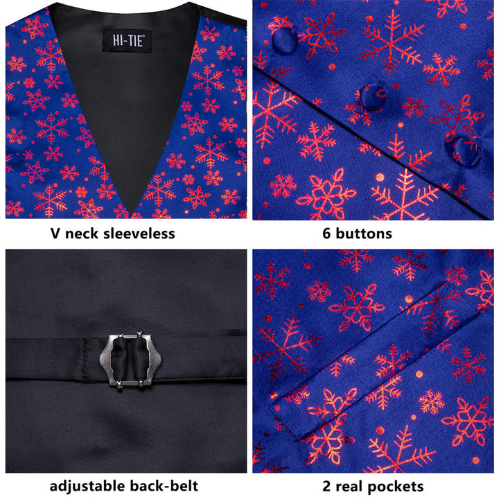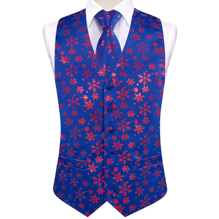 Ties2you Mens Silk Waistcoat Blue Purple Snow Christmas Vest Necktie Set