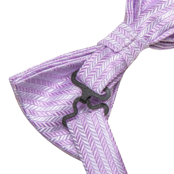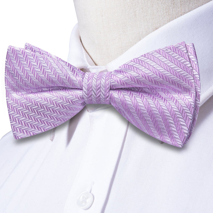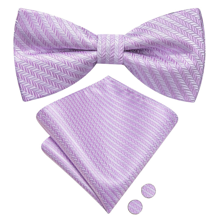 Ties2you Men's Striped Lavender Tuxedo Bow Tie Pre-tied Bowtie Pocket Square Cufflinks Set