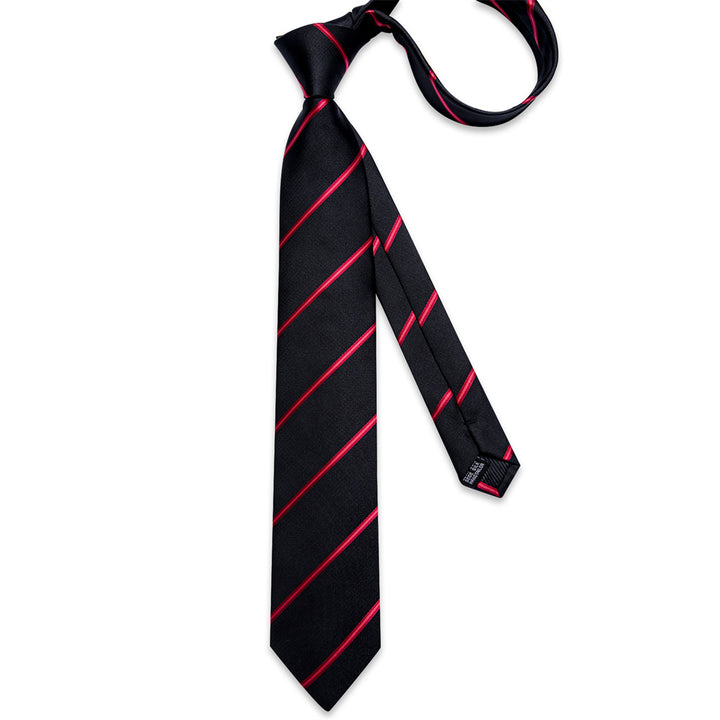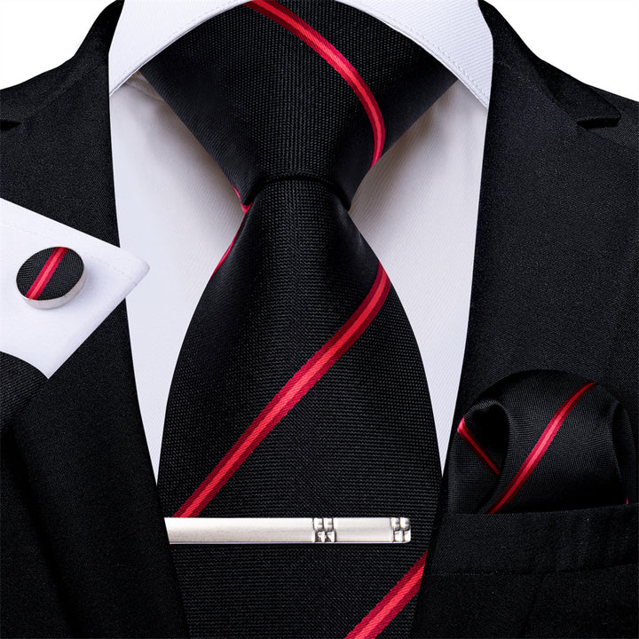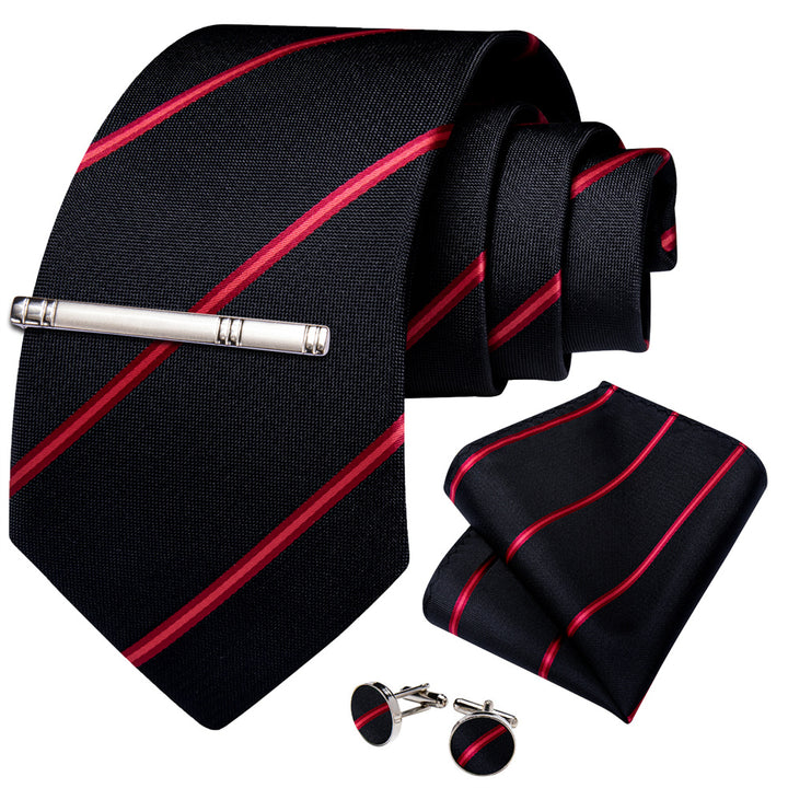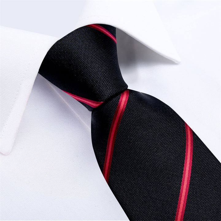 Ties2you Mens Tie Black Red Striped Necktie Pocket Square Cufflinks Set