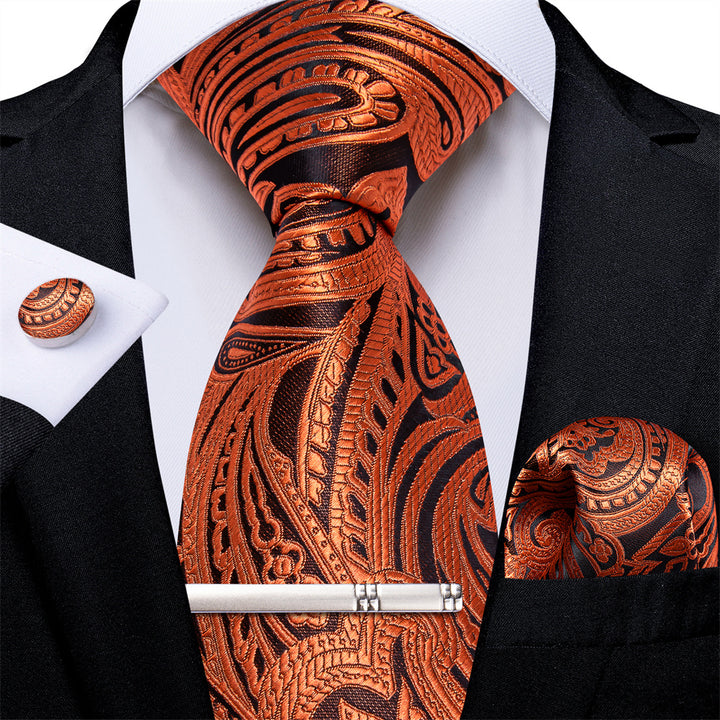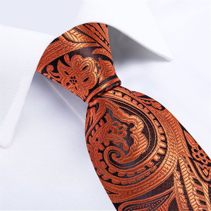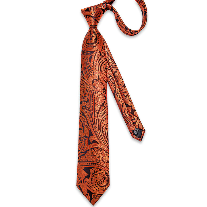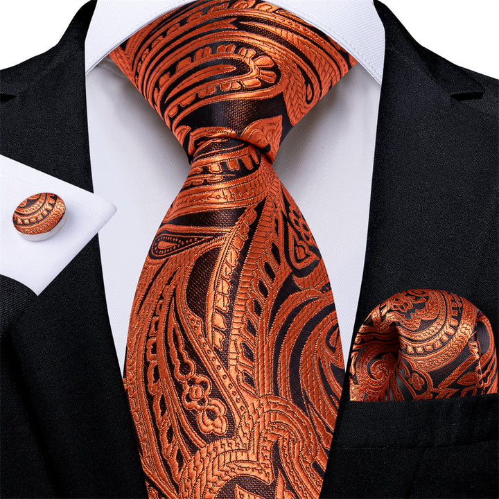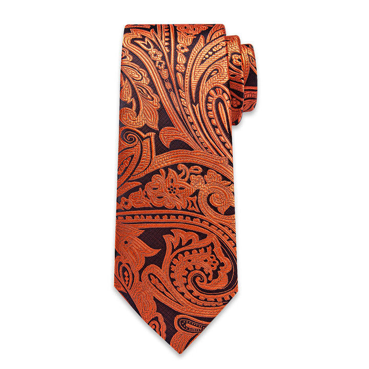 Ties2you Mens Tie Brown Paisley Necktie Pocket Square Cufflinks Set