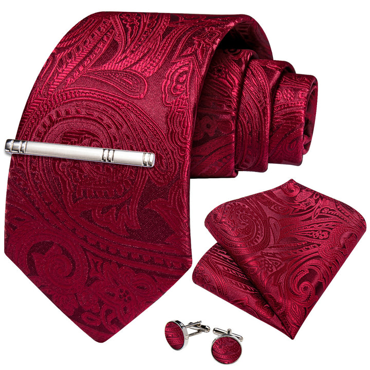 Ties2you Mens Tie Burgundy Paisley Necktie Pocket Square Cufflinks Set
