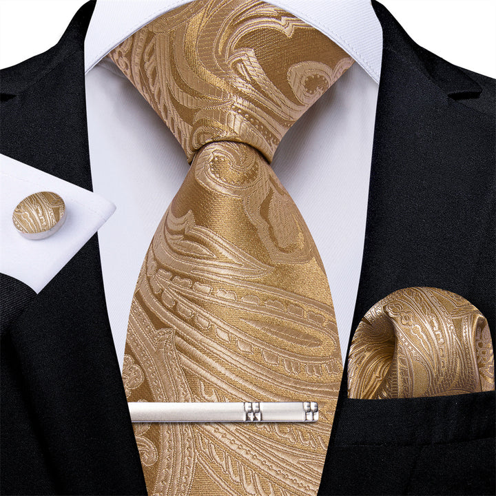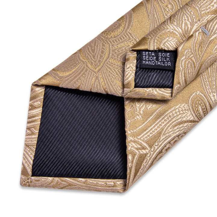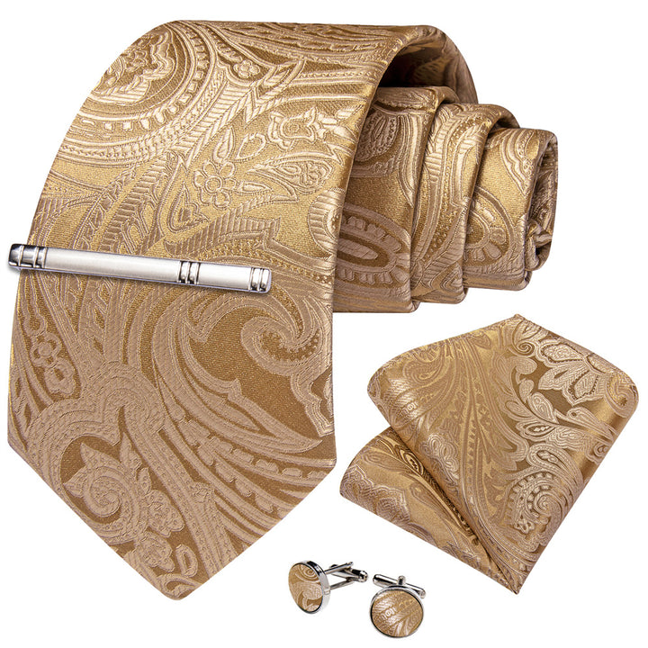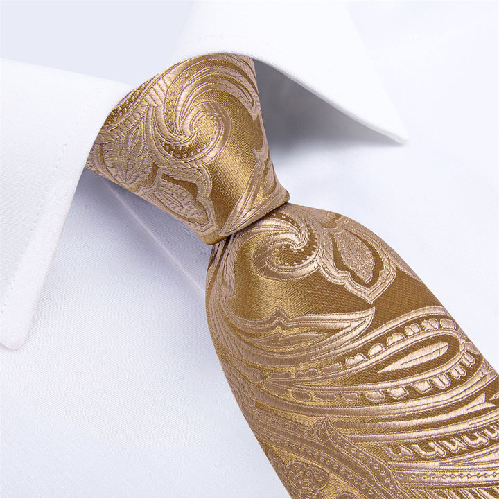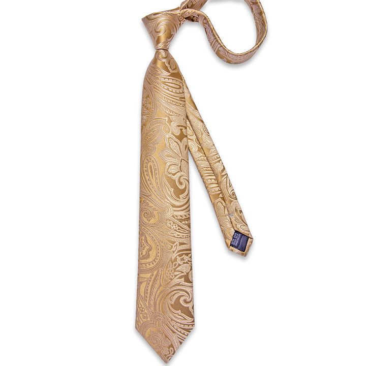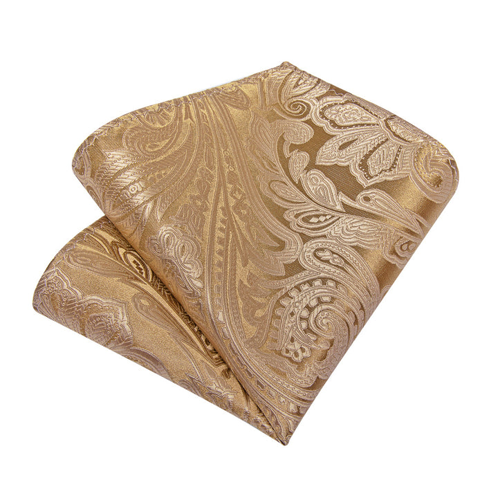 Ties2you Mens Tie Light Gold Paisley Necktie Pocket Square Cufflinks Set