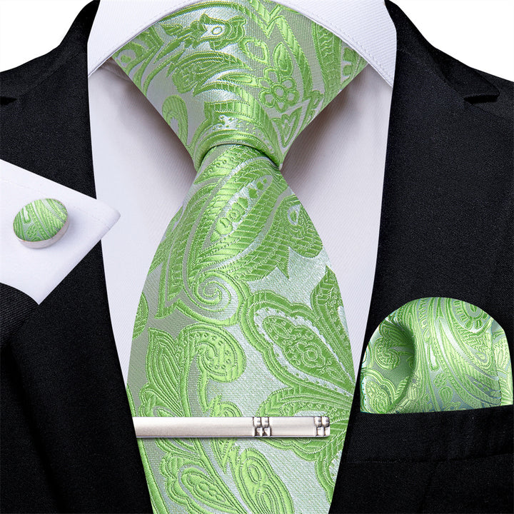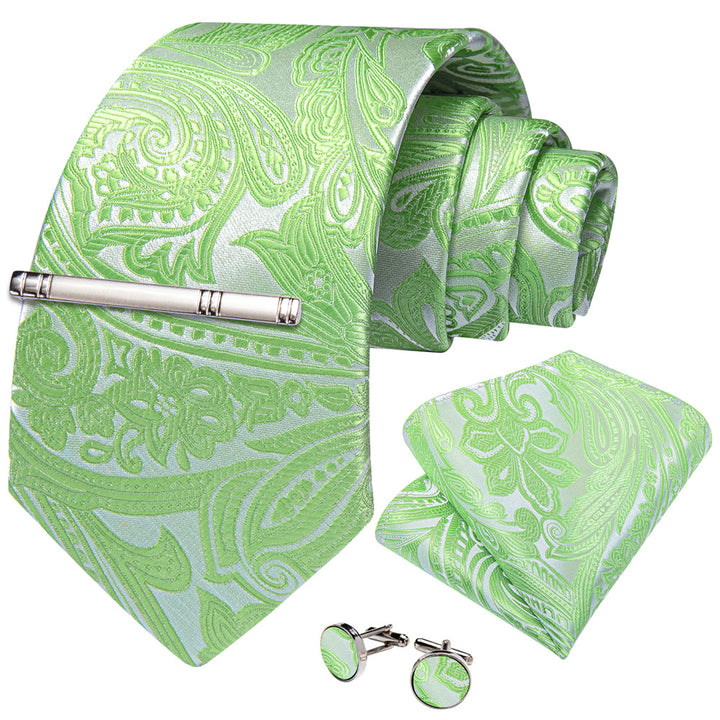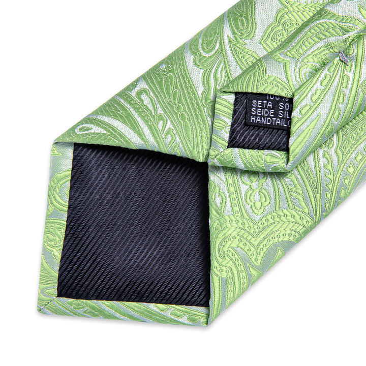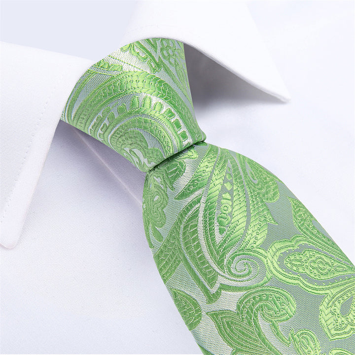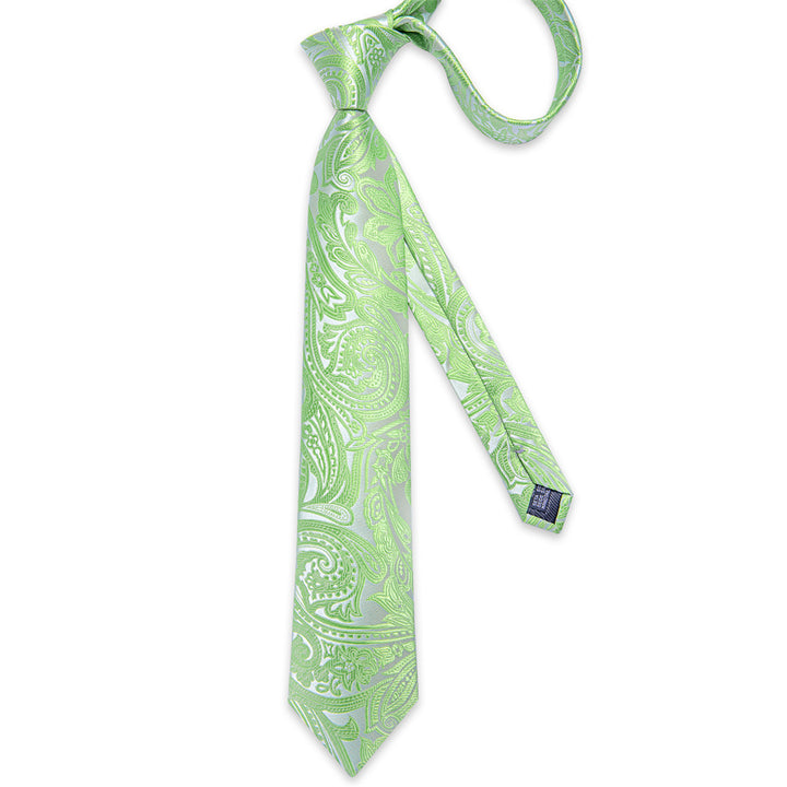 Ties2you Mens Tie Light Green Paisley Necktie Pocket Square Cufflinks Set