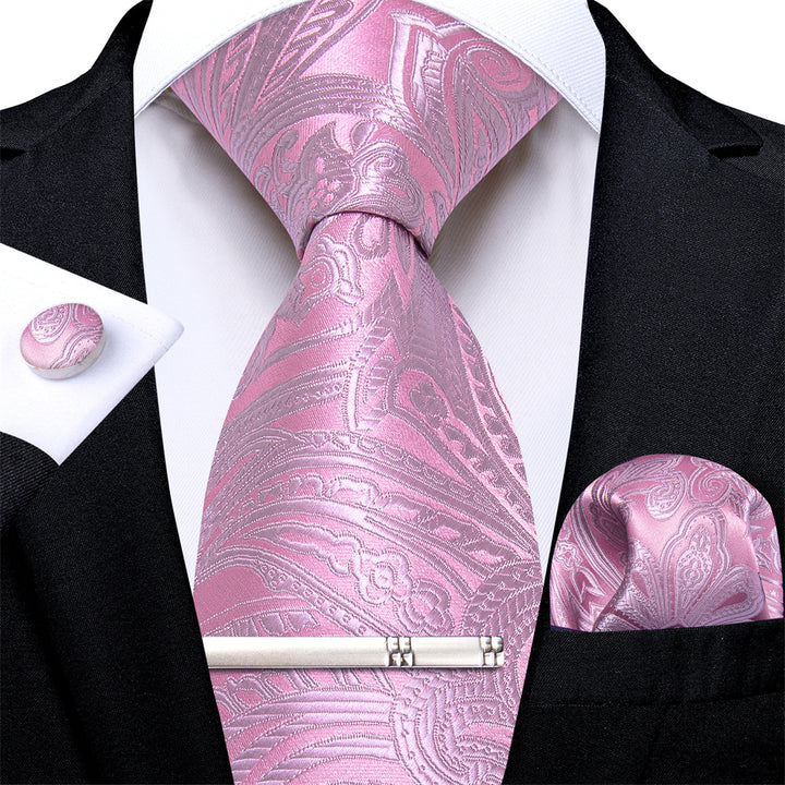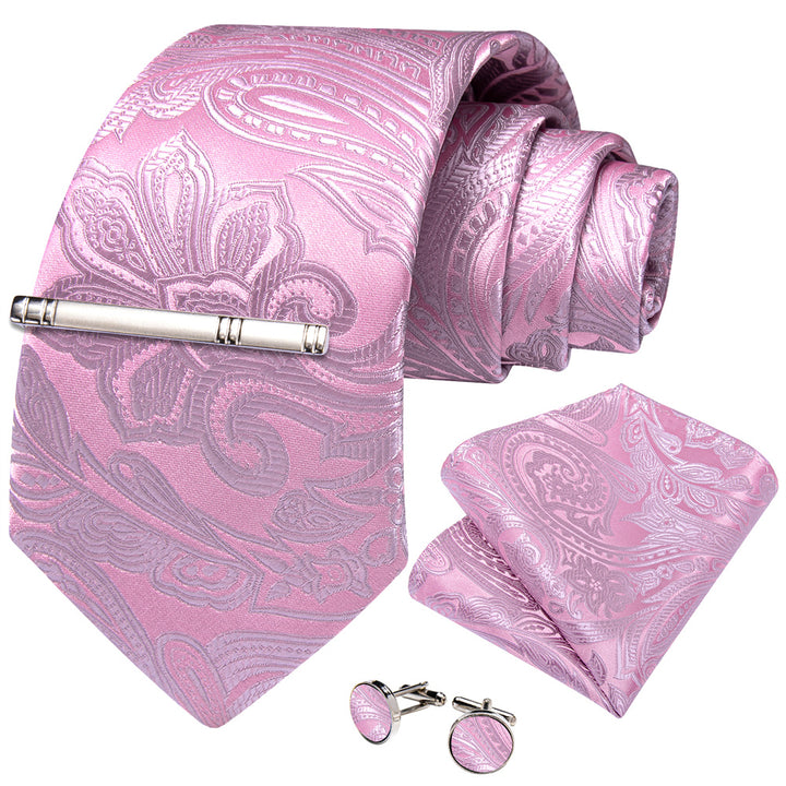 Ties2you Mens Tie Light Purple Paisley Necktie Pocket Square Cufflinks Set