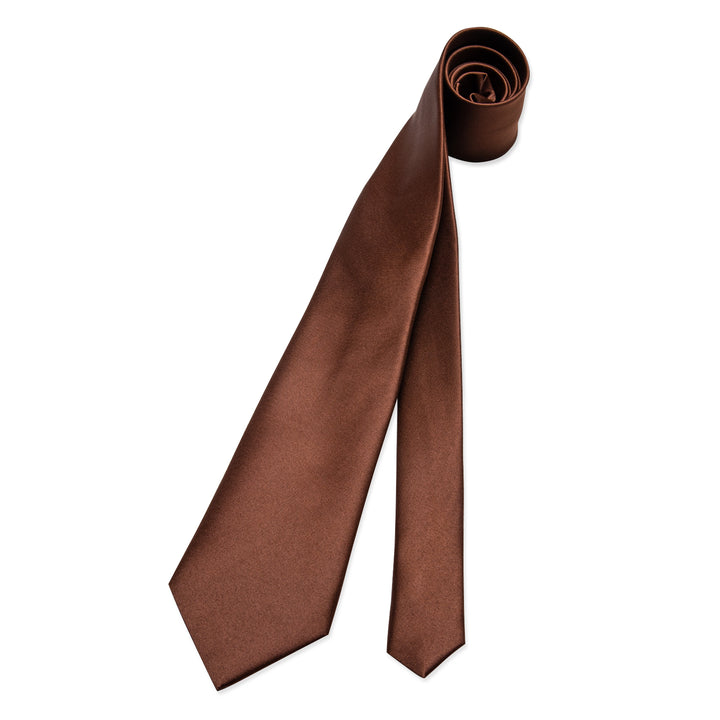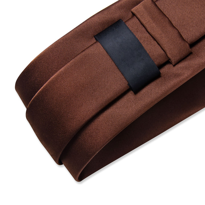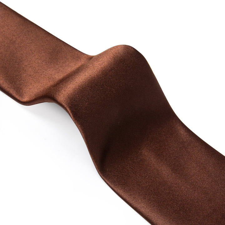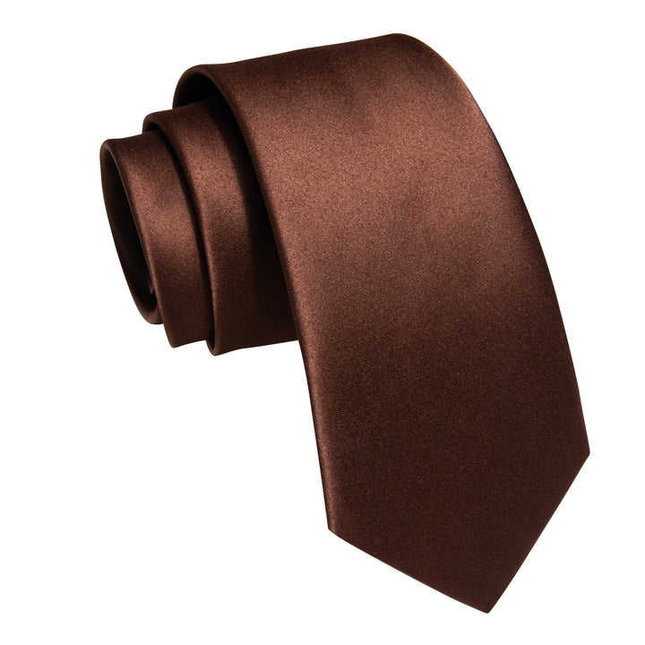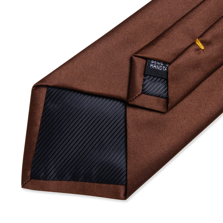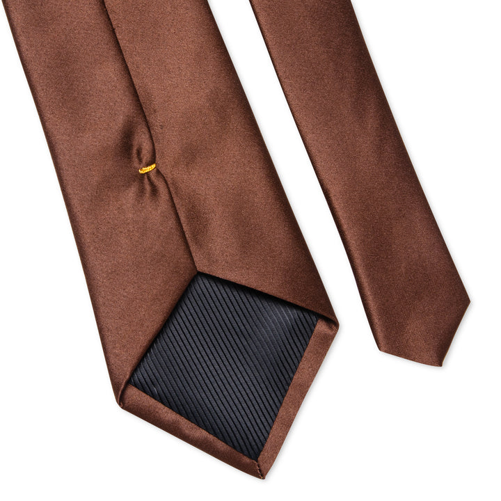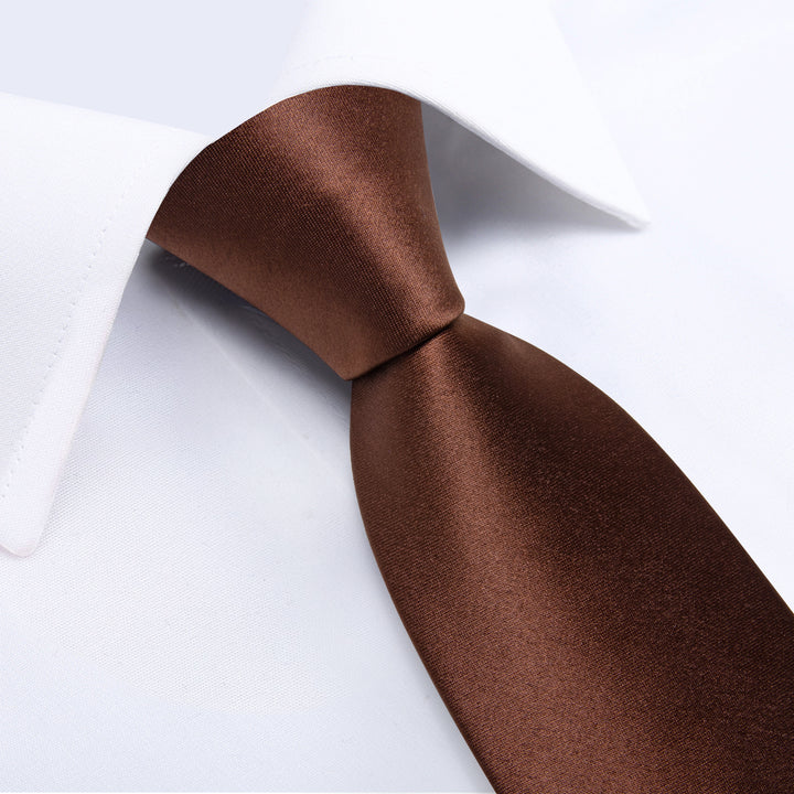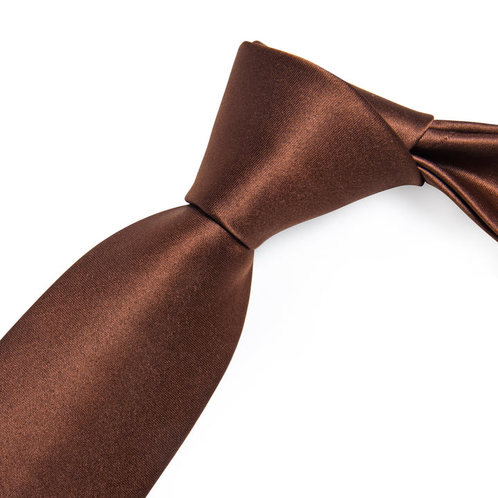 Ties2you Mens Tie Pure Brown Solid Silk Necktie Pocket Square Cufflinks Set