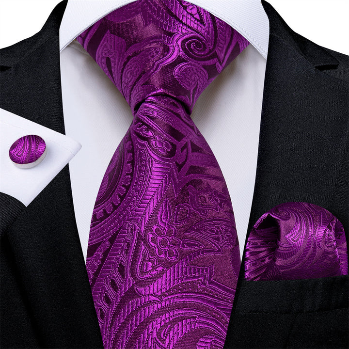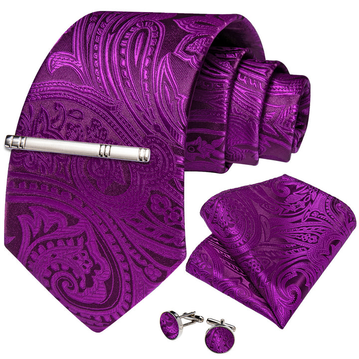 Ties2you Mens Tie Purple Paisley Necktie Pocket Square Cufflinks Set