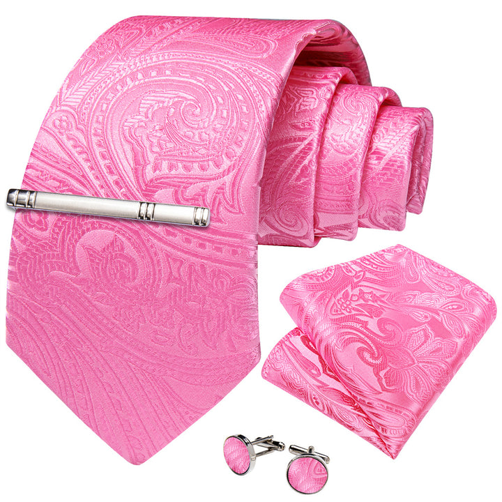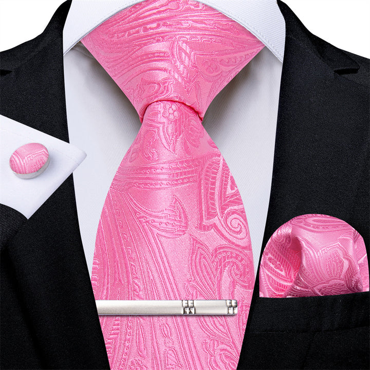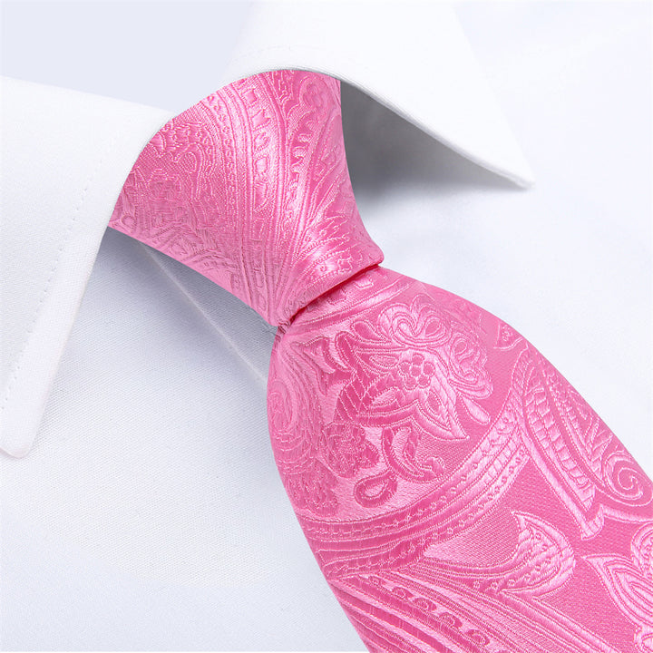 Ties2you Mens Tie Rose Pink Paisley Necktie Pocket Square Cufflinks Set