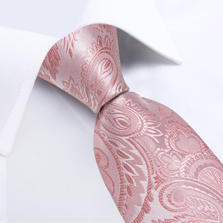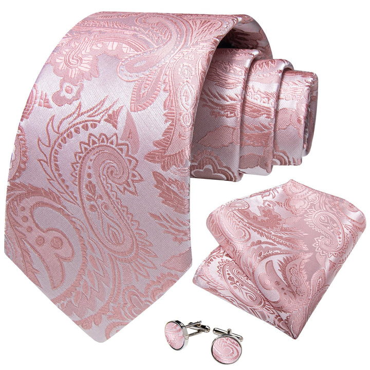 Ties2you Blush Pink Silk Tie Paisley Office Dress Necktie Hanky Cufflinks Set