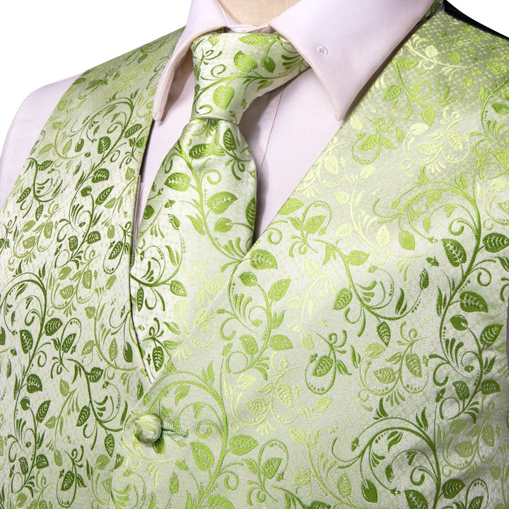 Ties2you Sage Green Floral Suit Waistcoat Formal Tuexdo Vest Necktie Pocket Square Set