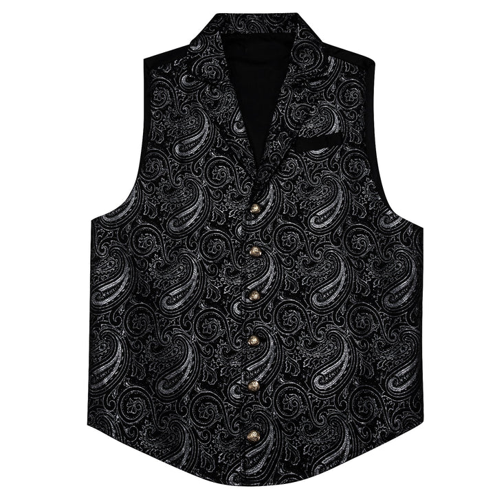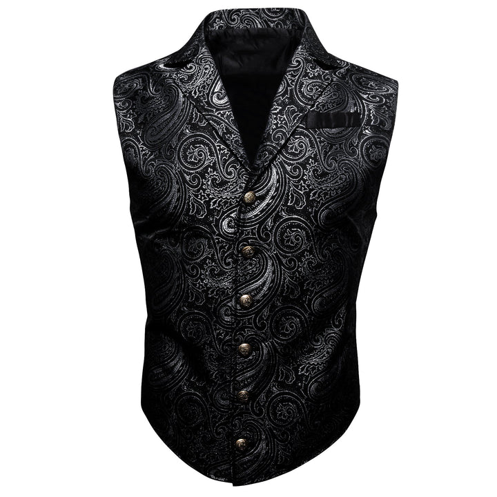 Ties2you Men's Vest Black White Paisley Jacquard Notched Collar Victorian Suit Vest