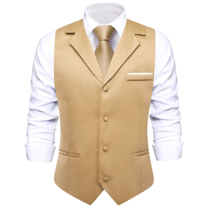 Ties2you Men's Vest Classic Tan Solid Silk Vest Suit Waistcoat