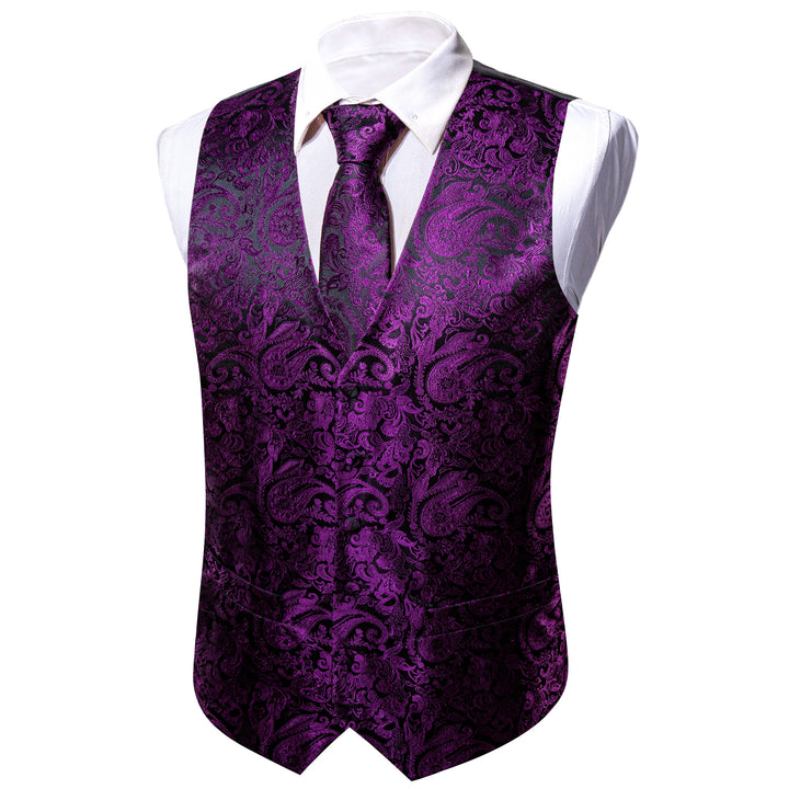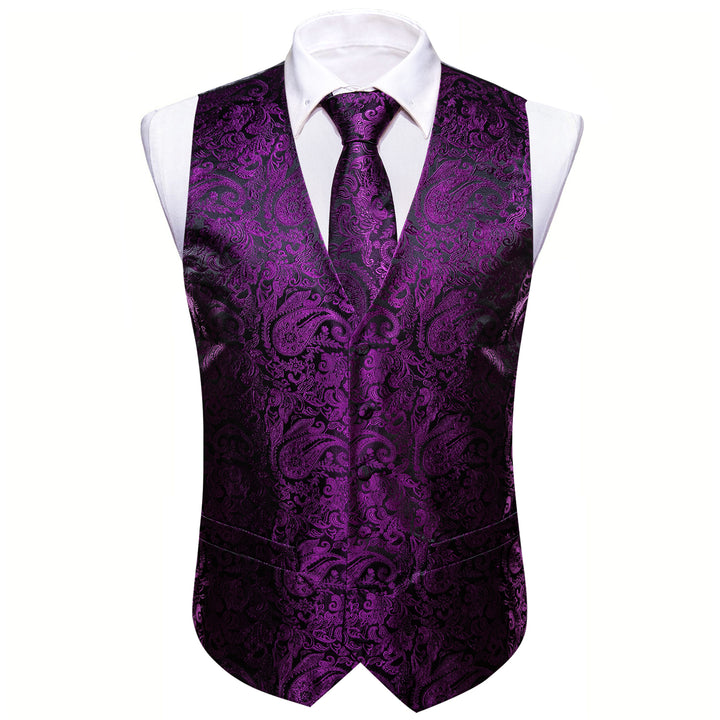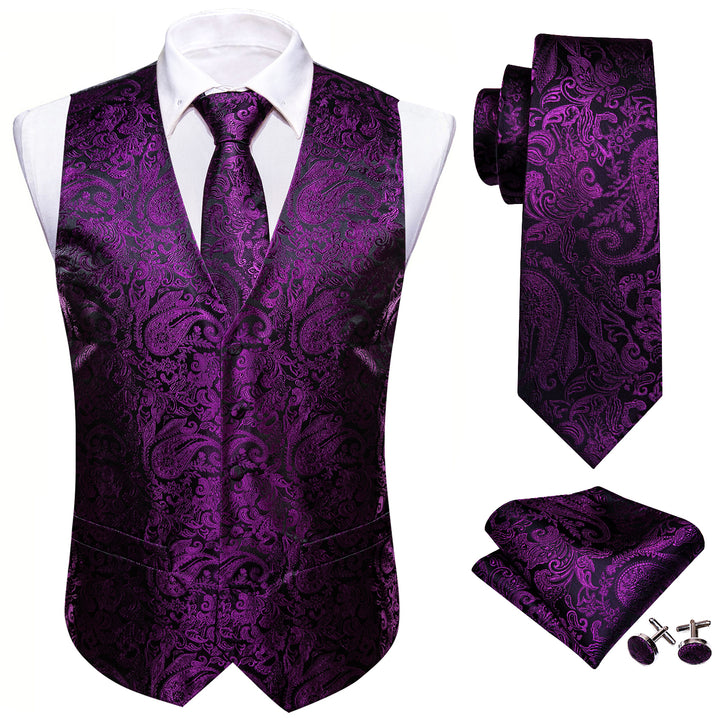 Ties2you Men's Vest Deep Purple Paisley Silk Vest Tie Hanky Cufflinks Set Waistcoat Suit Set