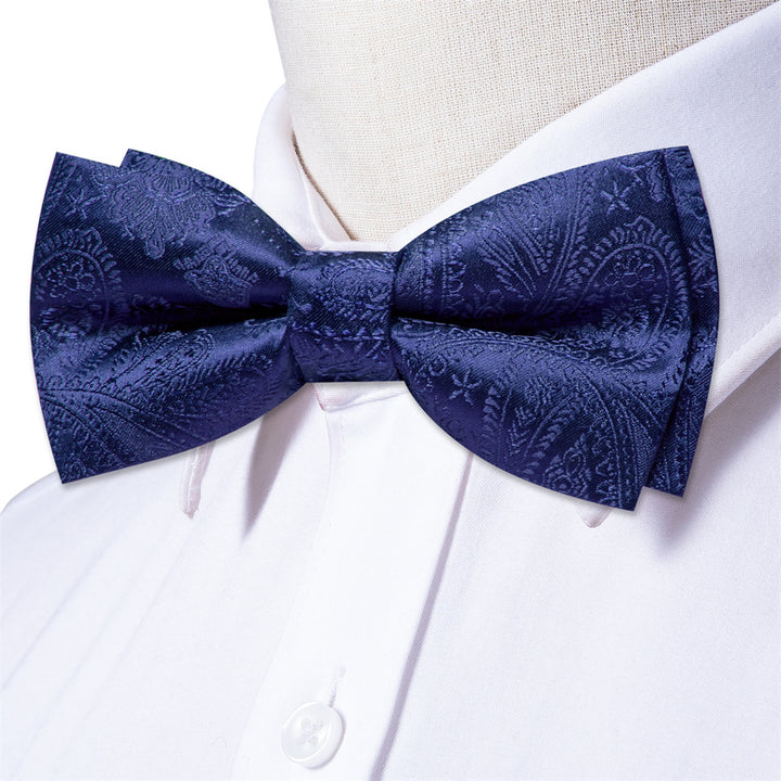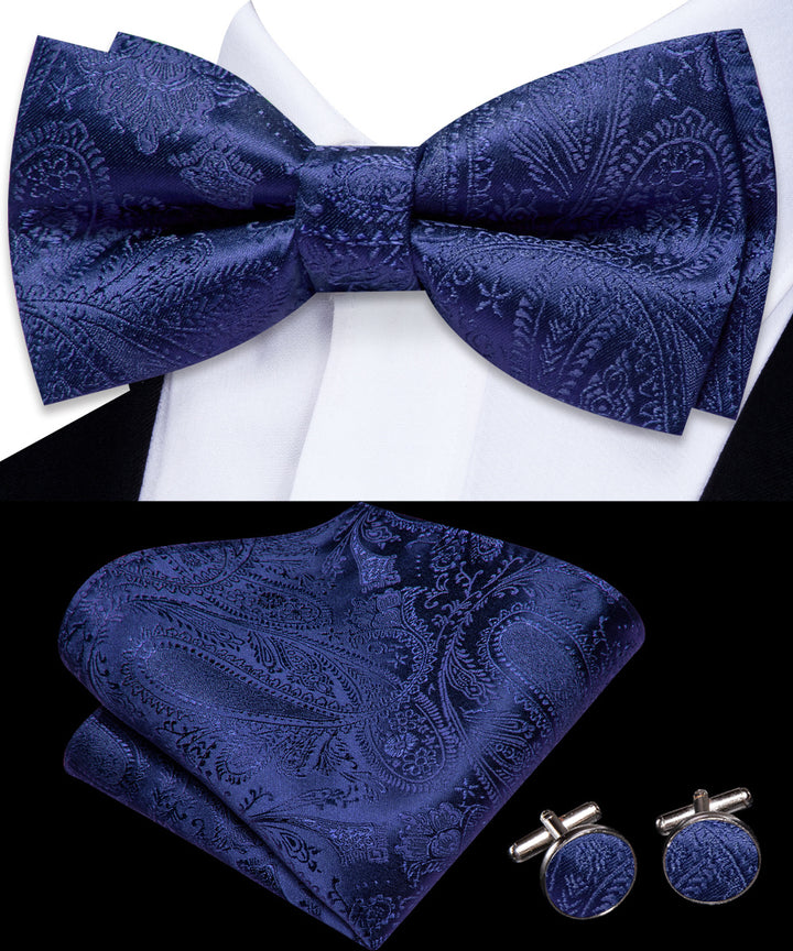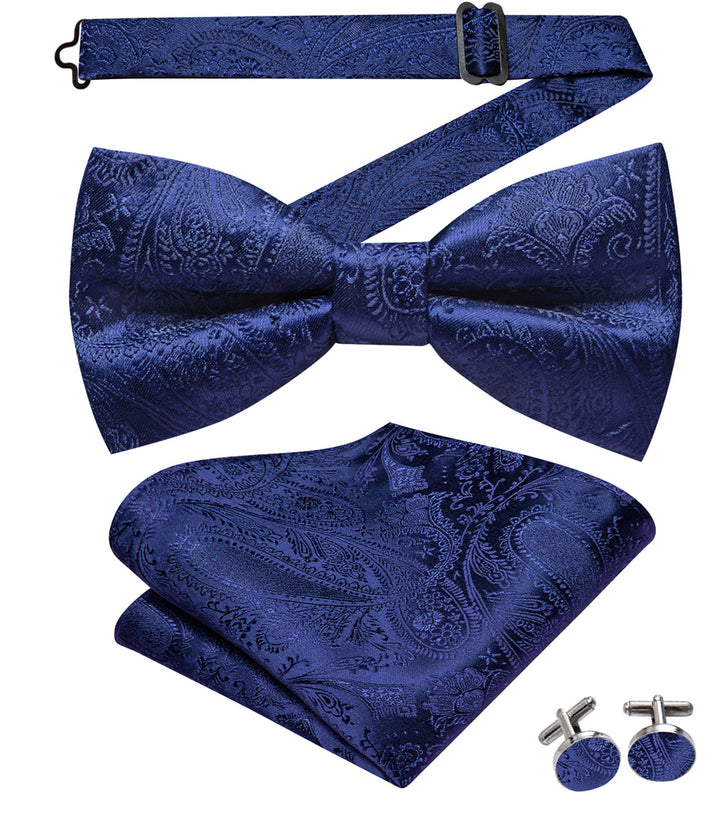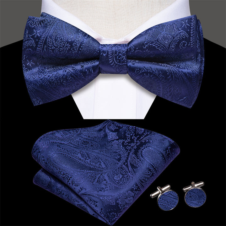 Ties2you Midnight Blue Paisley Pre-tied Bow Tie Hanky Cufflinks Set