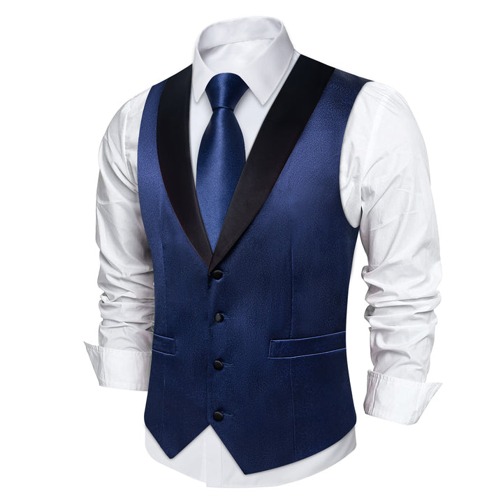 Ties2you Navy Blue Vest for Men Solid Shawl Collar Vest Tie Hanky Cufflinks Set for Business