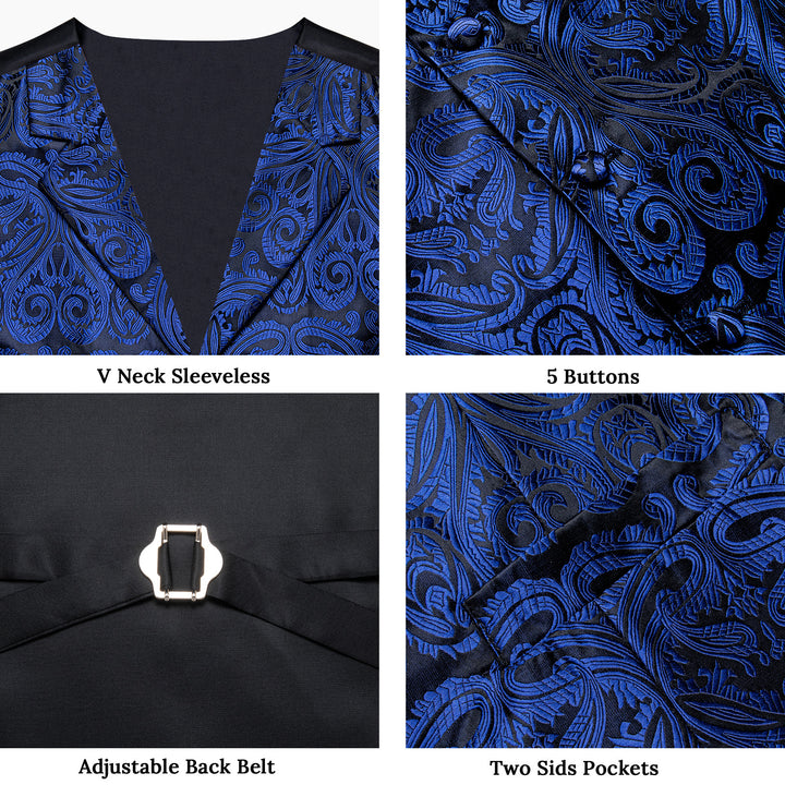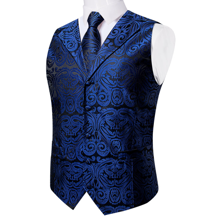 Ties2you Navy Blue Vest Mens Paisley Wedding Vest Tie Hanky Cufflinks Set