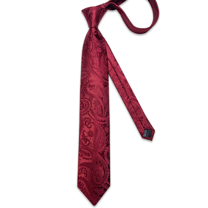 Ties2you Neck Tie Burgundy Paisley Silk Mens Dress Work Tie Handkerchief Cufflinks Set