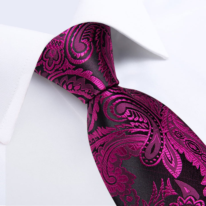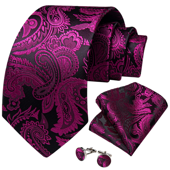 Ties2you Neck Tie Deep Purple Black Paisley Silk Mens Dress Tie Handkerchief Cufflinks Set