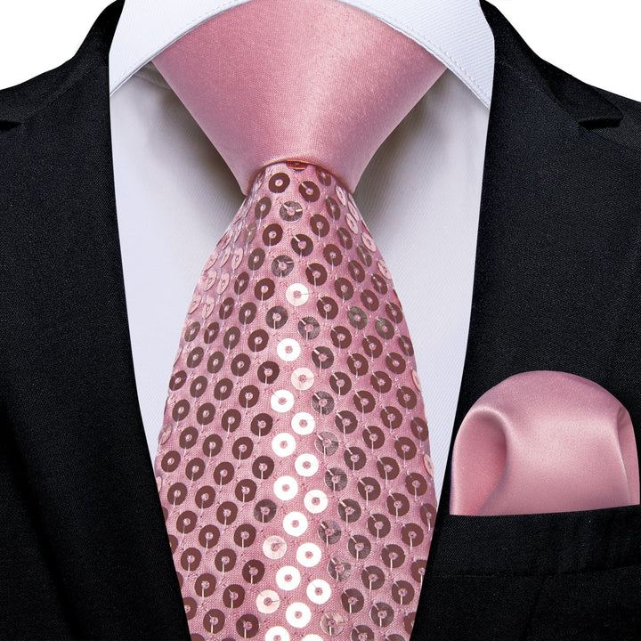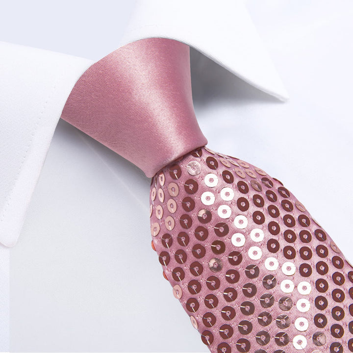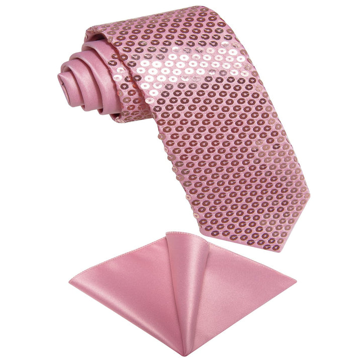 Ties2you Neck Tie Novelty Sequin Dusty Pink Mens Casual Tie Pocket Square Set for Party