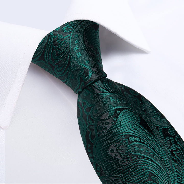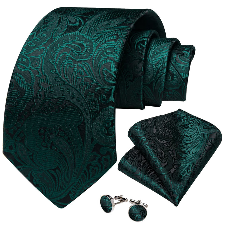 Ties2you Neck Tie Phthalo Green Floral Silk Mens Dress Work Tie Handkerchief Cufflinks Set
