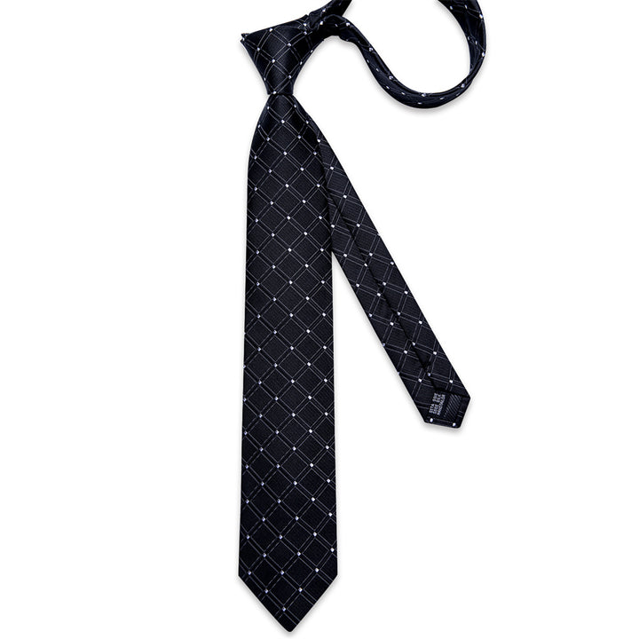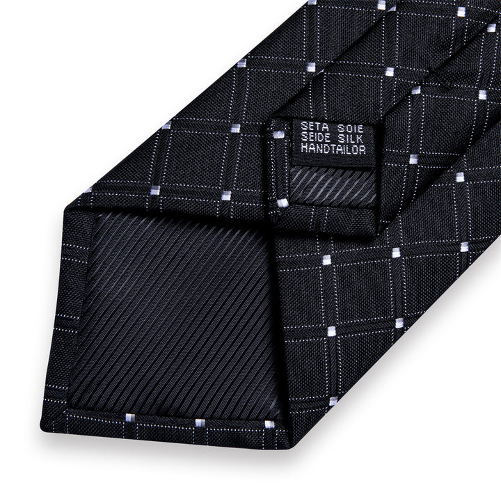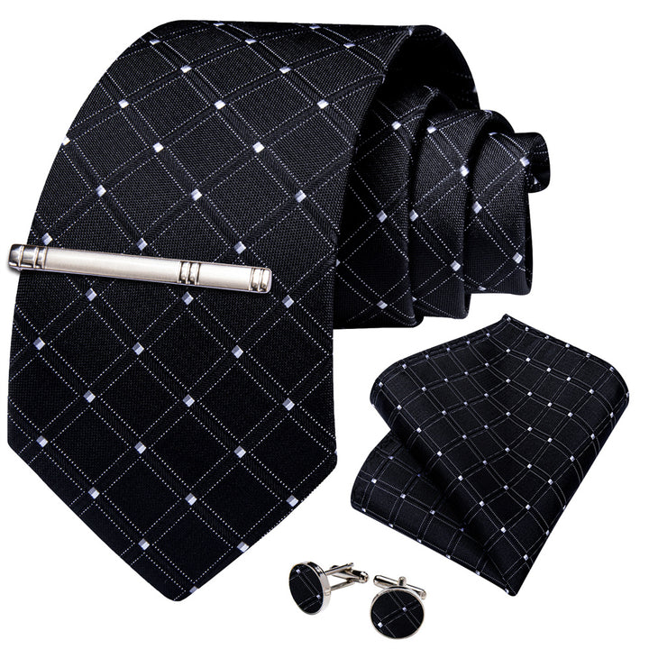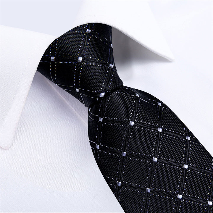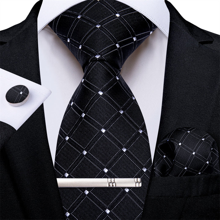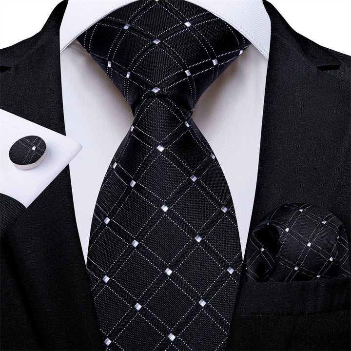 Ties2you Necktie Black Plaid Men's Tie Pocket Square Cufflinks Set