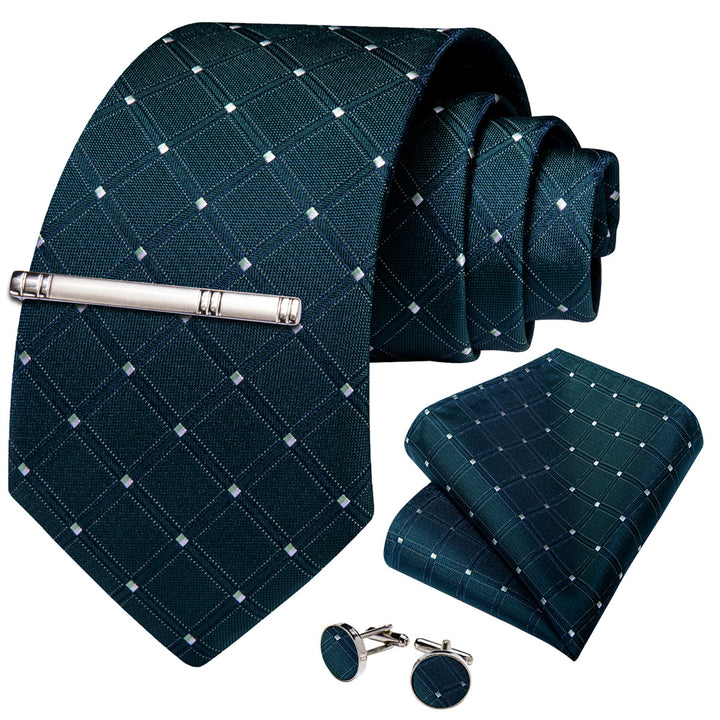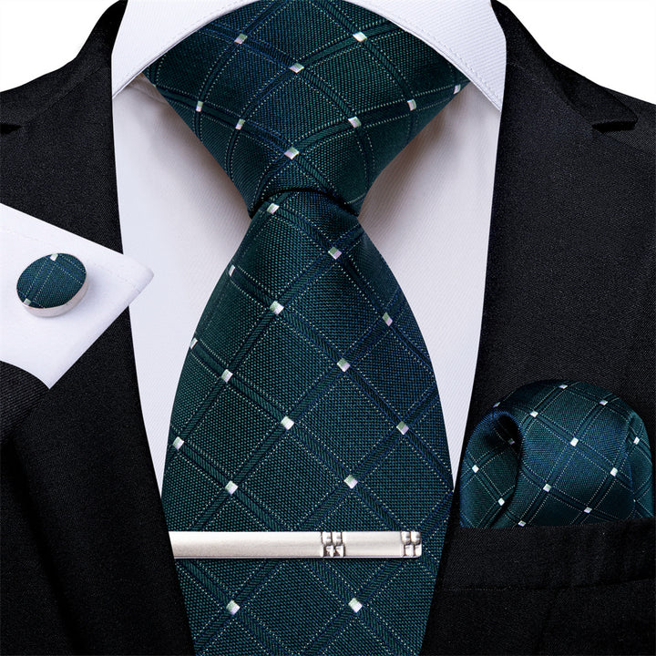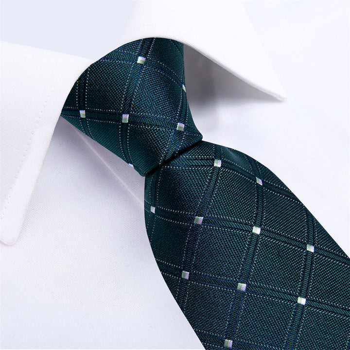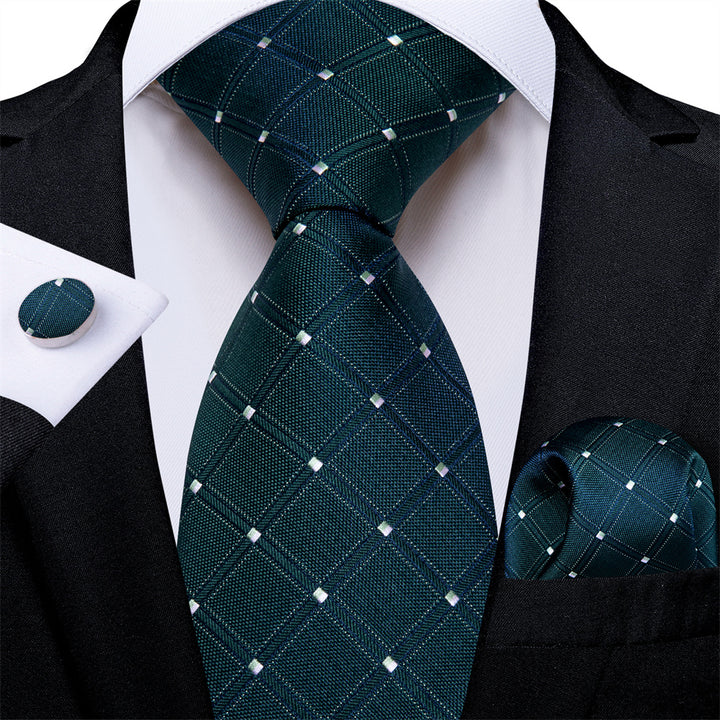 Ties2you Necktie Dark Green Plaid Men's Tie Pocket Square Cufflinks Set