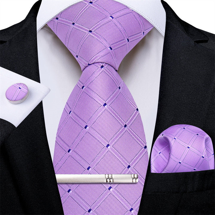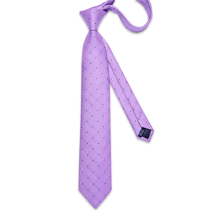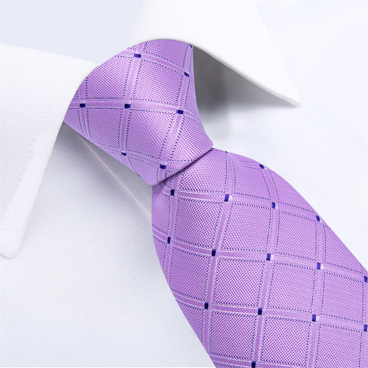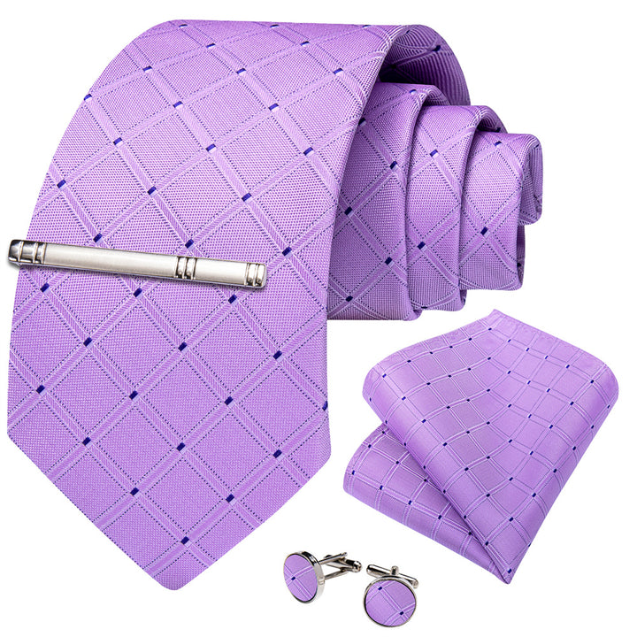 Ties2you Necktie Purple Plaid Men's Tie Pocket Square Cufflinks Set