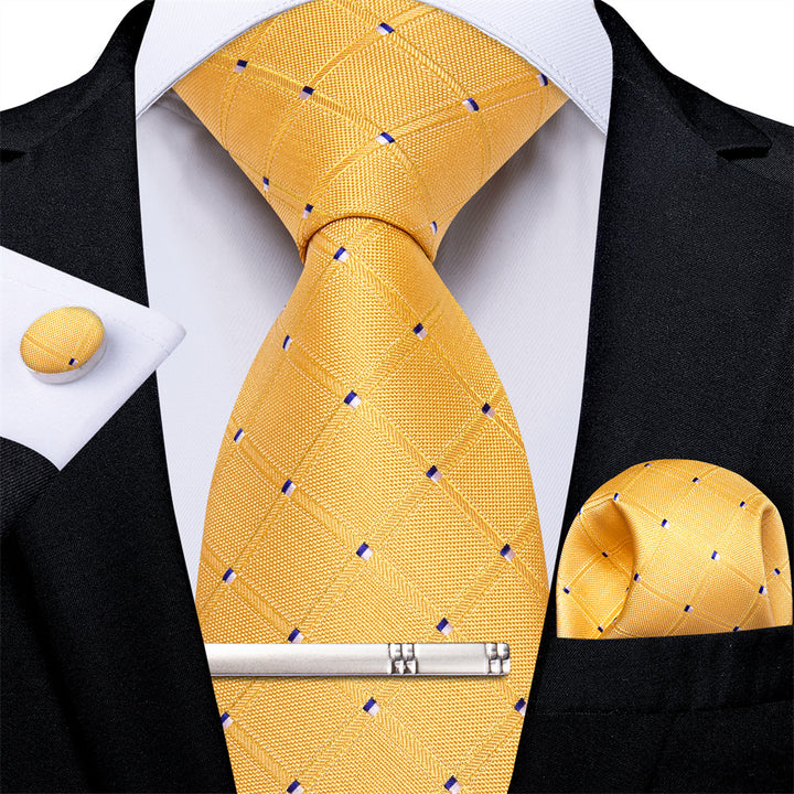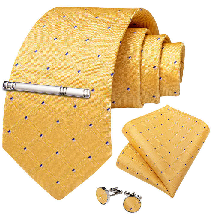 Ties2you Necktie Yellow Plaid Men's Tie Pocket Square Cufflinks Set