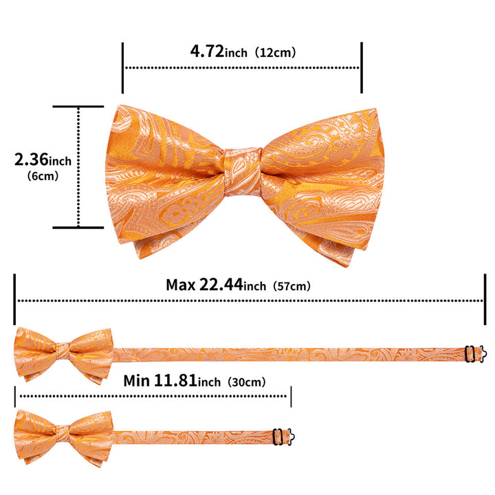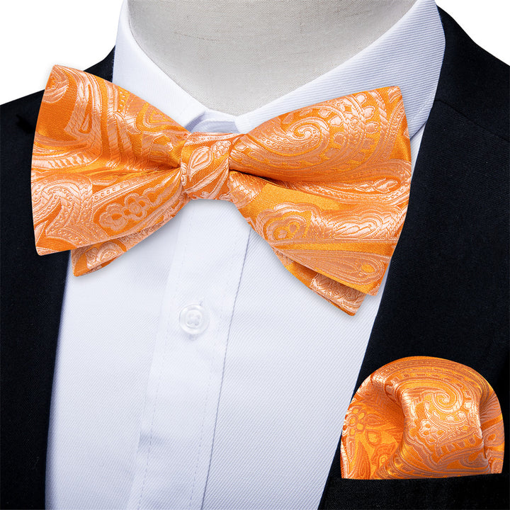 Ties2you Orange Paisley Pre-tied Bow Tie Pocket Square Cufflinks Set