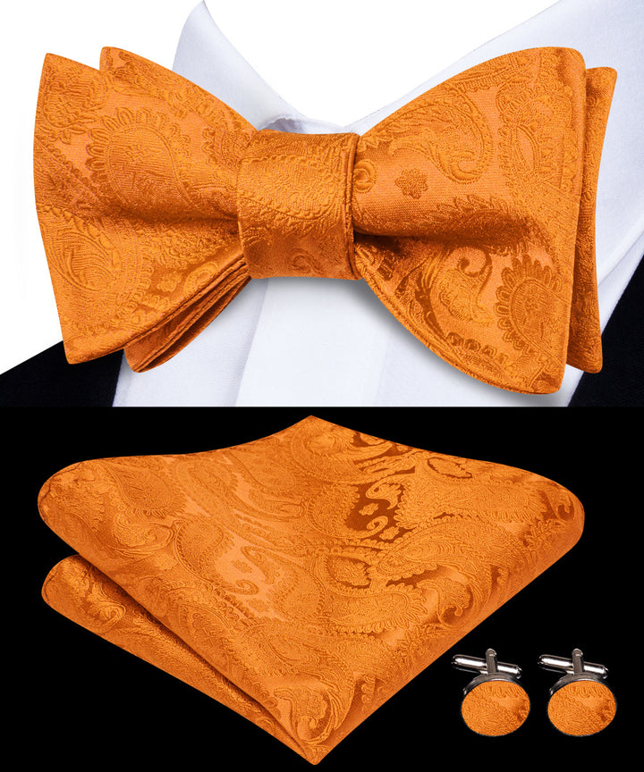 Ties2you Orange Paisley Tuxedo Bowtie Self-tie Bow Tie Pocket Square Cufflinks Set
