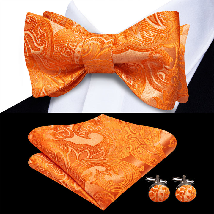 Ties2you Orange Floral Bowtie Self-tie Bow Tie Pocket Square Cufflinks Set
