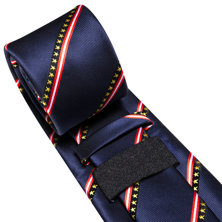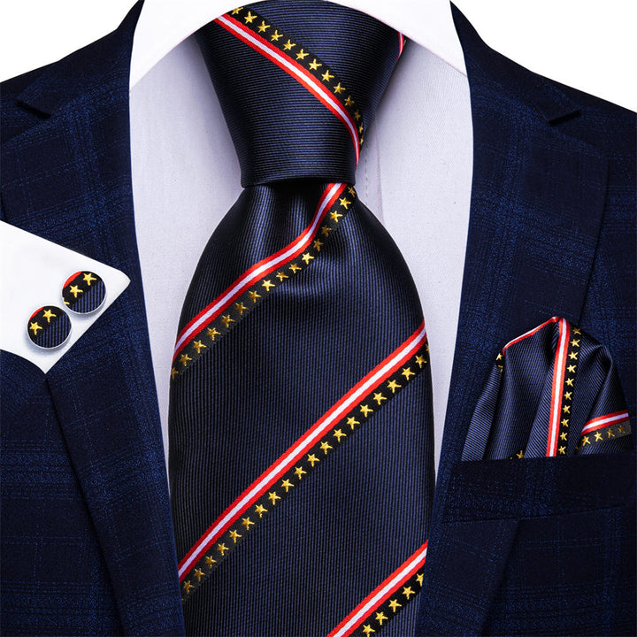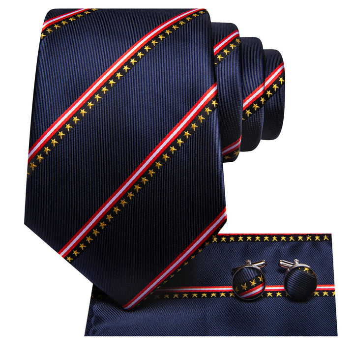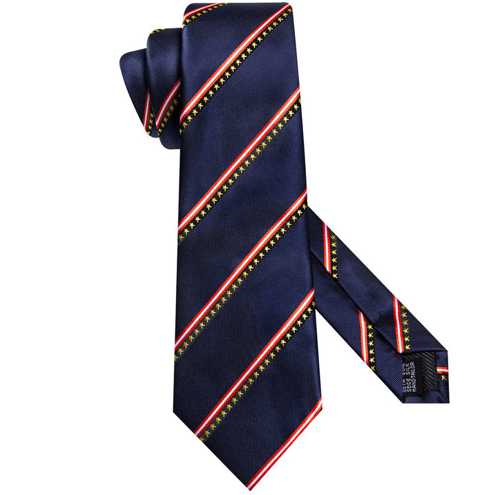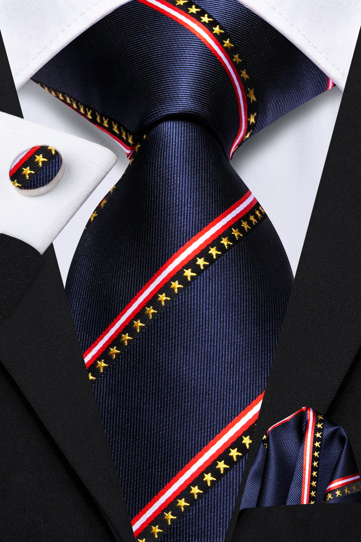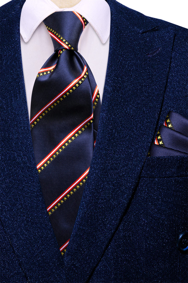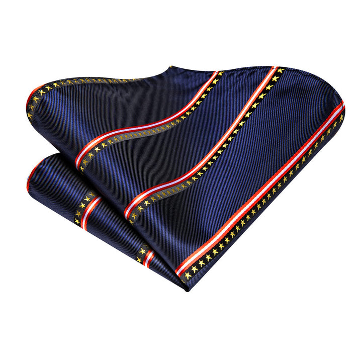 Ties2you Oxford Blue Striped Star Orange Tie Hanky Cufflinks Set