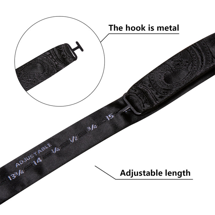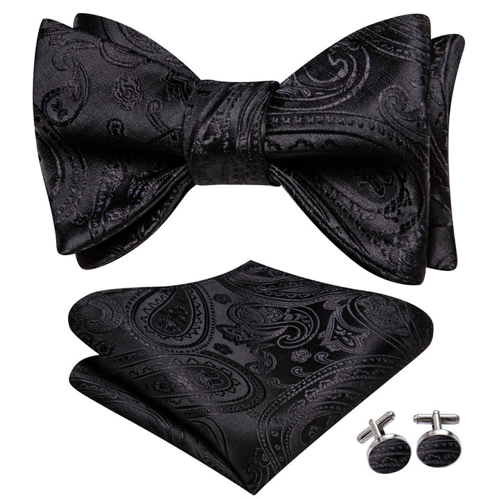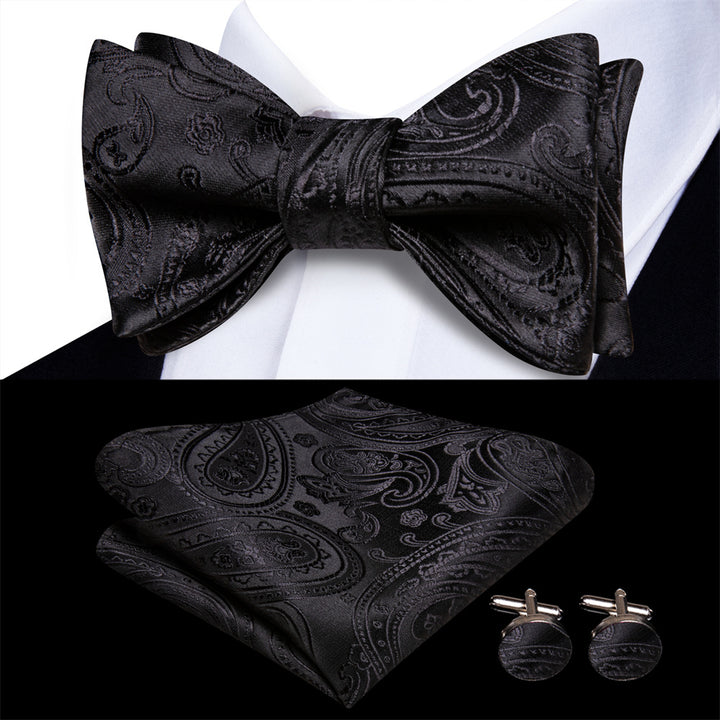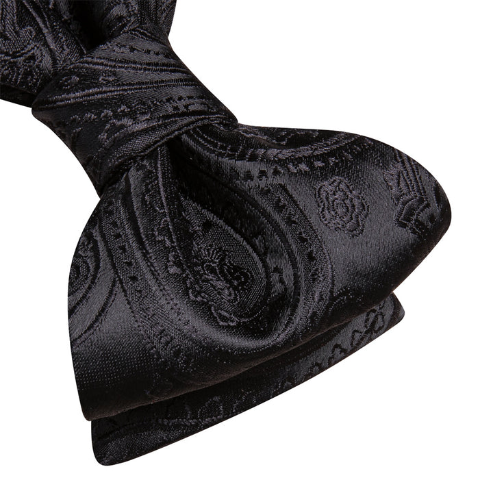 Ties2you Paisley Black Bowtie Pre-tied Business Bow Tie Pocket Square Cufflinks Set