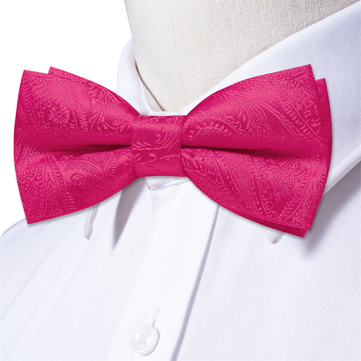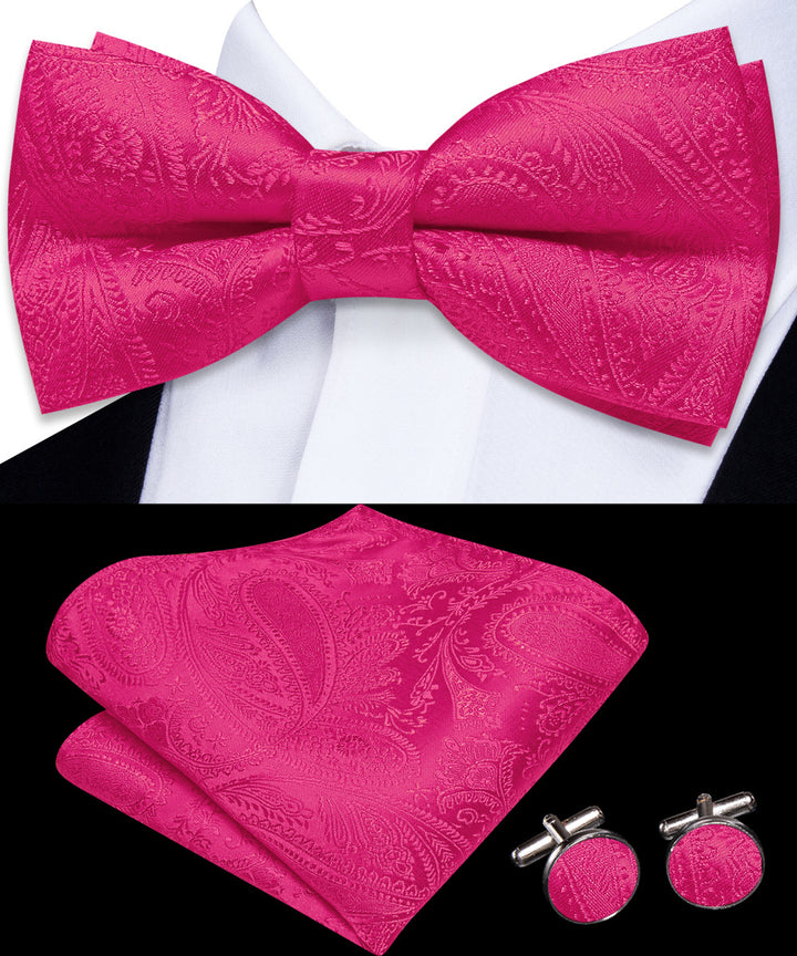 Ties2you Paisley Hot Pink Bowtie Pre-tied Formal Bow Tie Pocket Square Cufflinks Set
