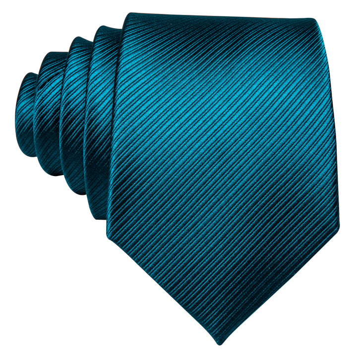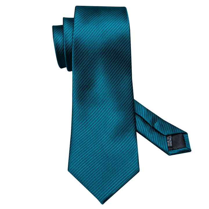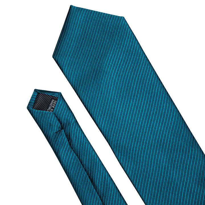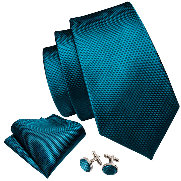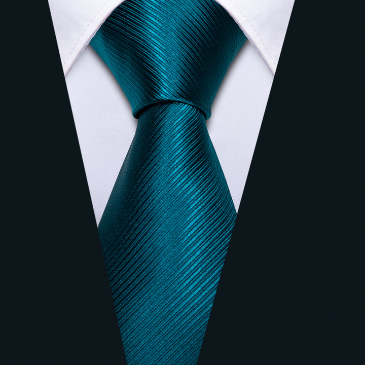 Ties2you Mens Teal Silk Necktie Striped Prom Dress Tie Hanky Cufflinks Set