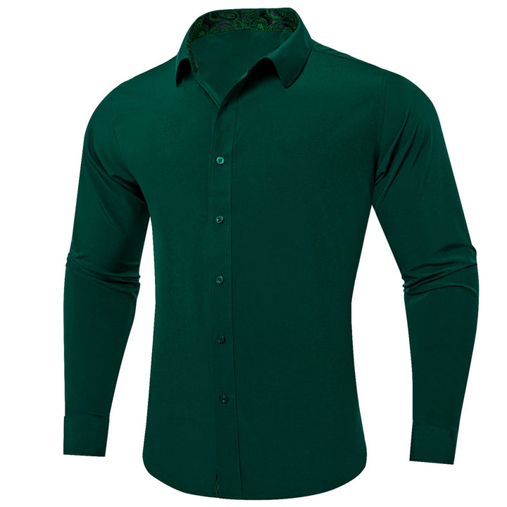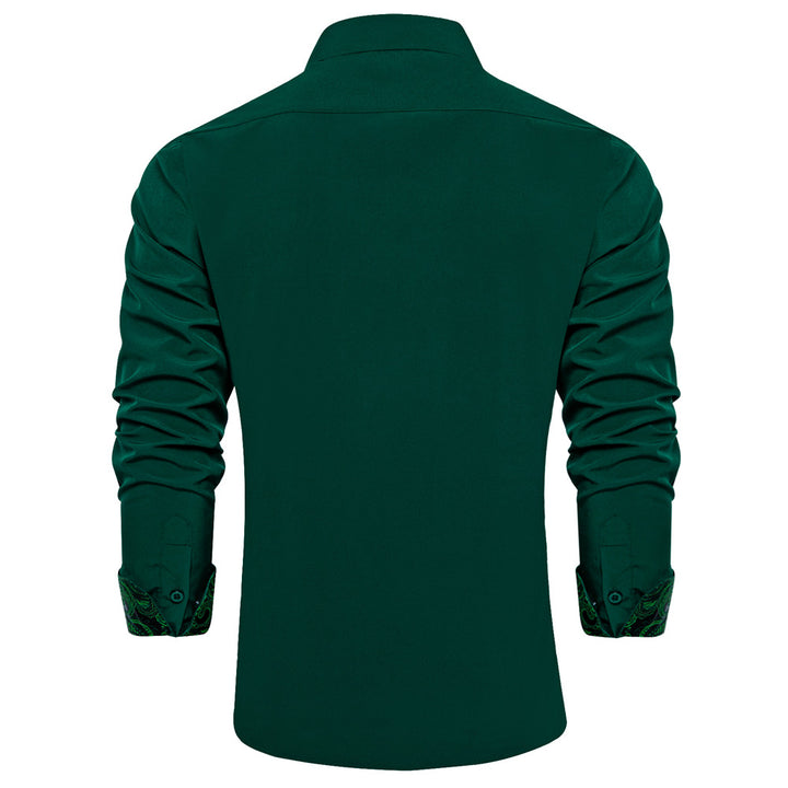 Ties2you Phthalo Green Long Sleeve Collar Shirt Solid Paisley Splicing Mens Dress Shirt