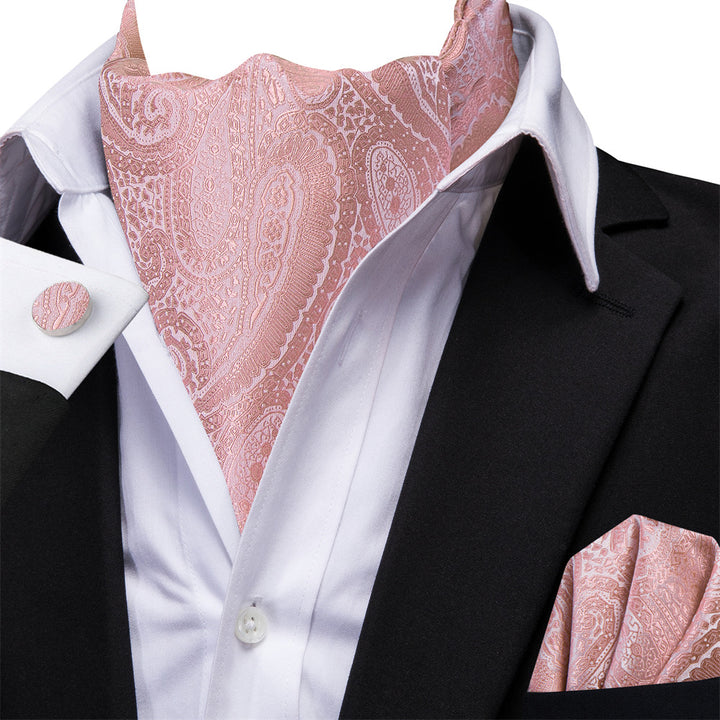 Ties2you Pink Paisley Silk Ascot Cravat Tie Pocket Square Cufflinks Set