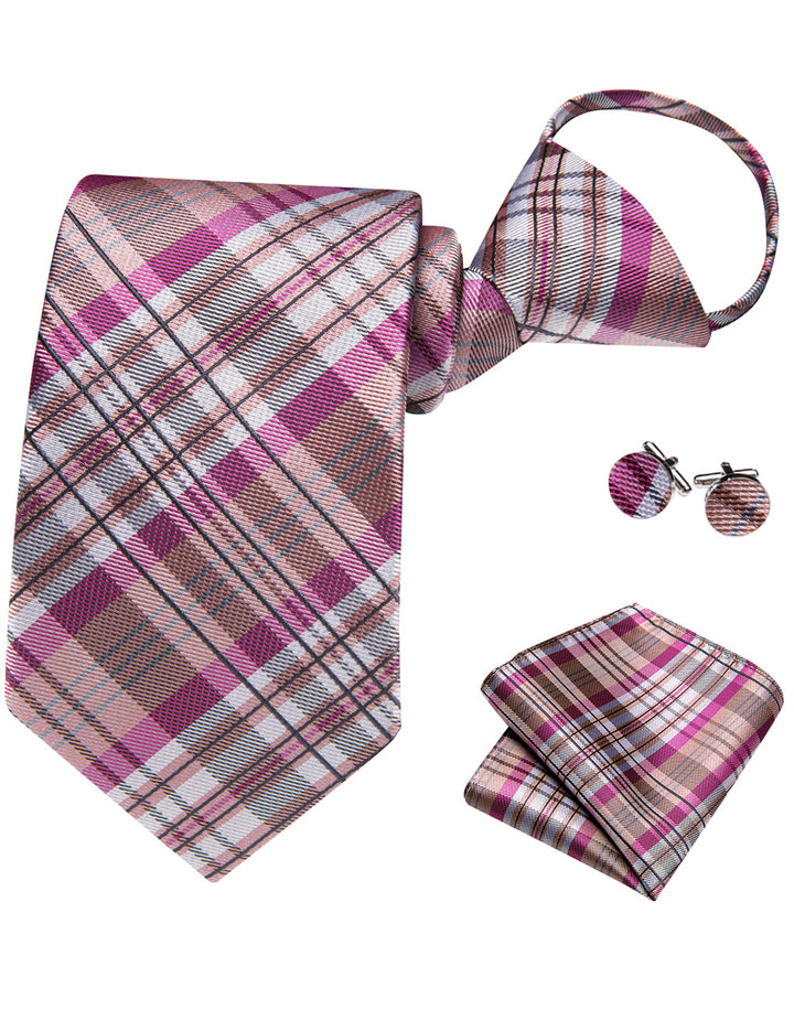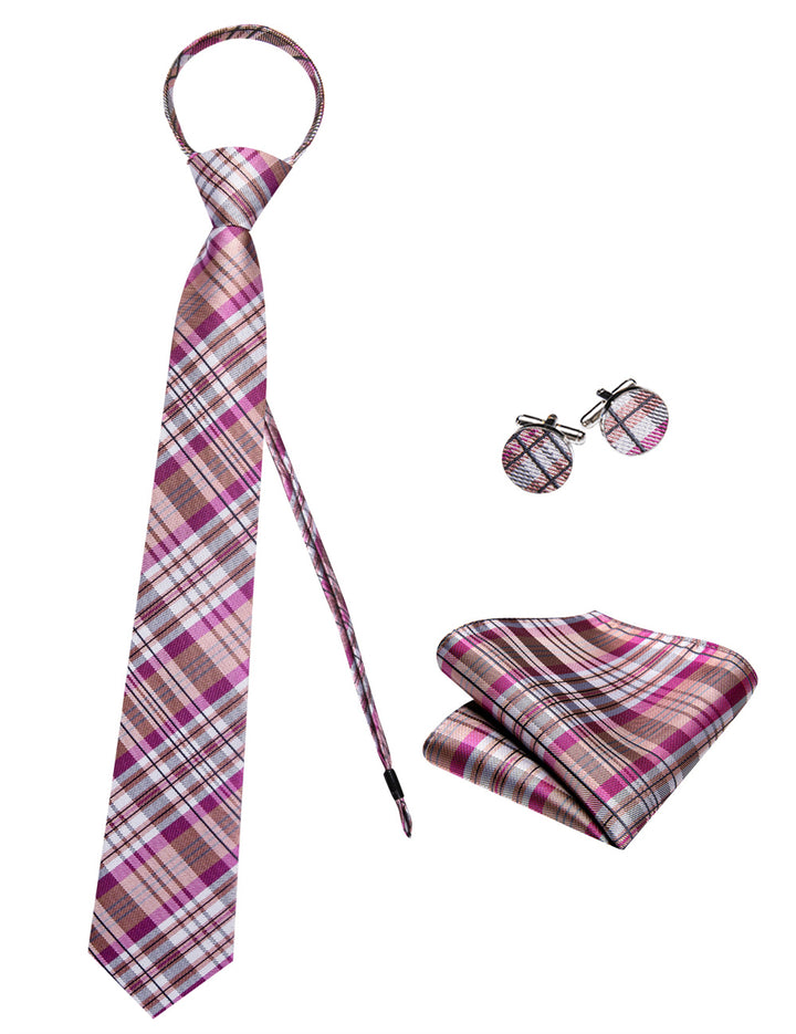 Package including Zipper Necktie + Pocket Square + Cufflinks