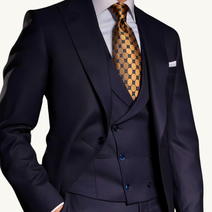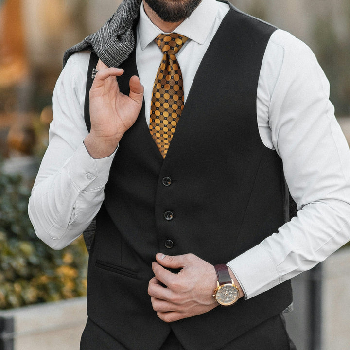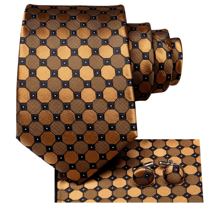 Golden Plaid Silk tie and pocket square CufflinK set with black suit