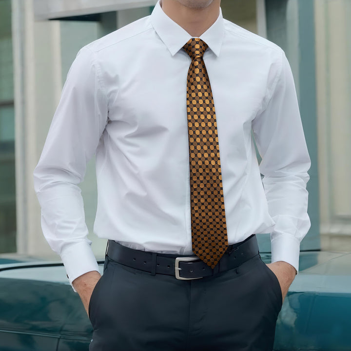 Golden Plaid Silk mens designer ties for white shirt and brown mens suit