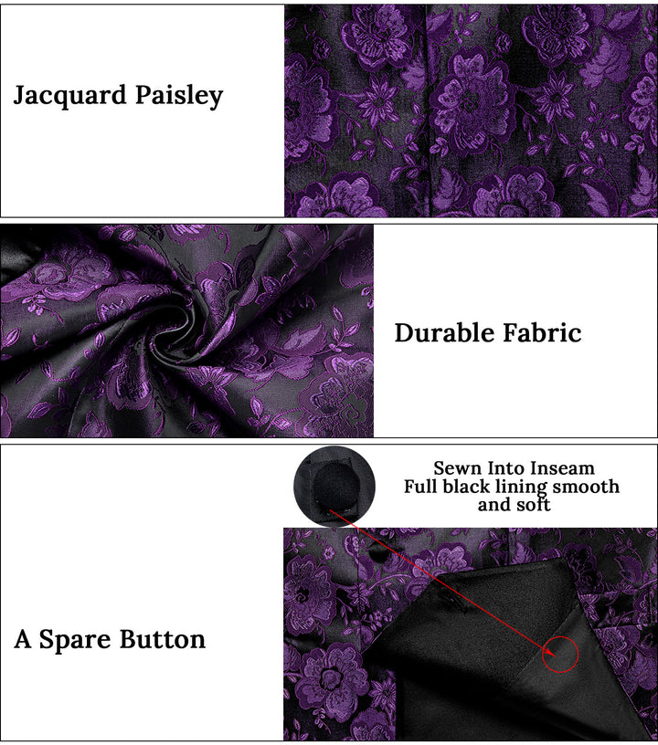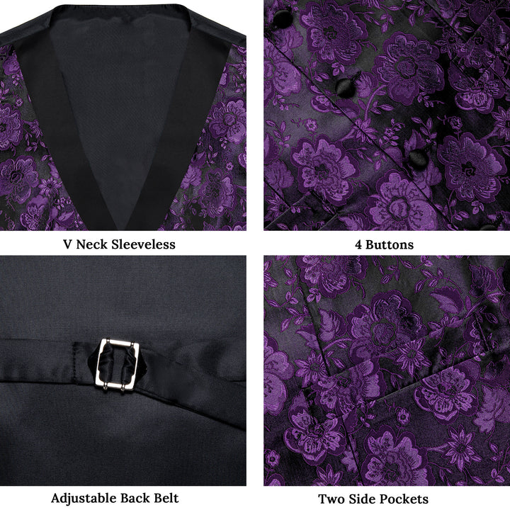 Ties2you Purple Floral Suit Vest Shawl Collar Dress Waistcoat Tie Pocket Square Cufflinks Set
