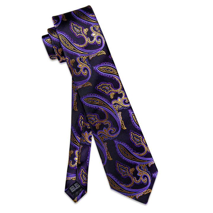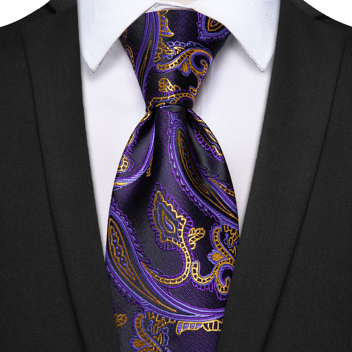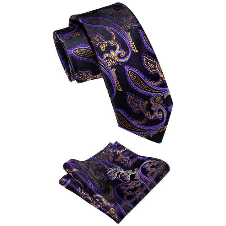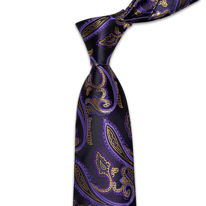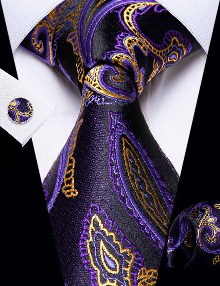 Ties2you Purple Gold Paisley Men's Wedding Necktie Pocket Square Cufflinks Set